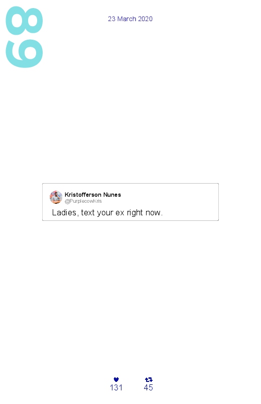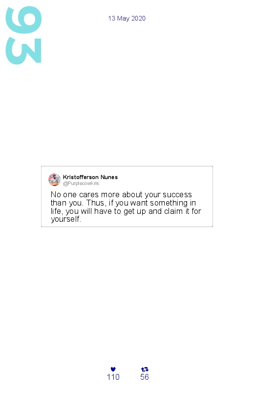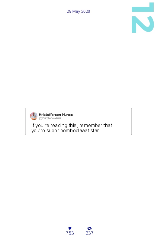 Kristofferson Nunes made the blook of their their Twitter account ! Support their creativity by buying their blook or create your own now on BlookUp!