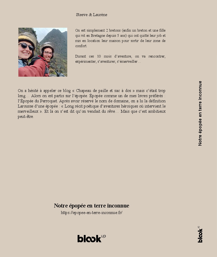 Steeve & Laurène made the blook of their their blog Wordpress ! Support their creativity by buying their blook or create your own now on BlookUp!