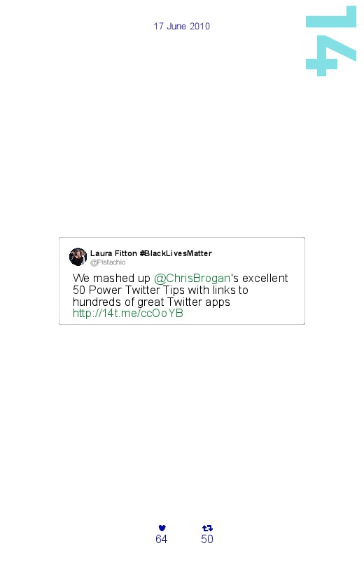 ⚖️Laura Fitton #BlackLivesMatter made the blook of their their Twitter account ! Support their creativity by buying their blook or create your own now on BlookUp!