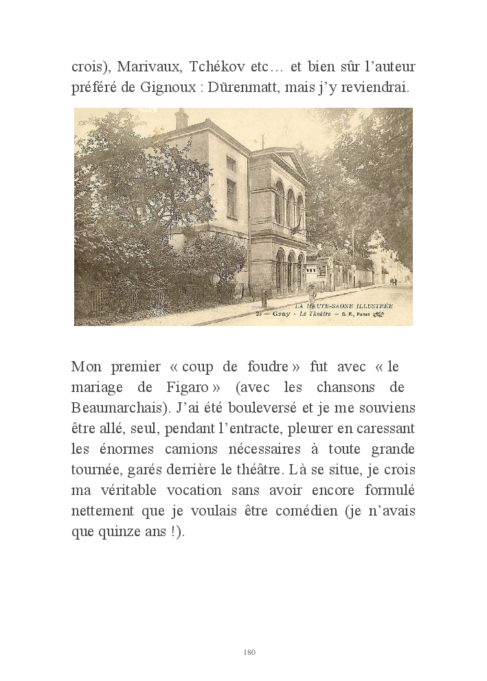 Il joue ensuite Molière, Goldoni, Obaldia, et chante Offenbach et Gounod.