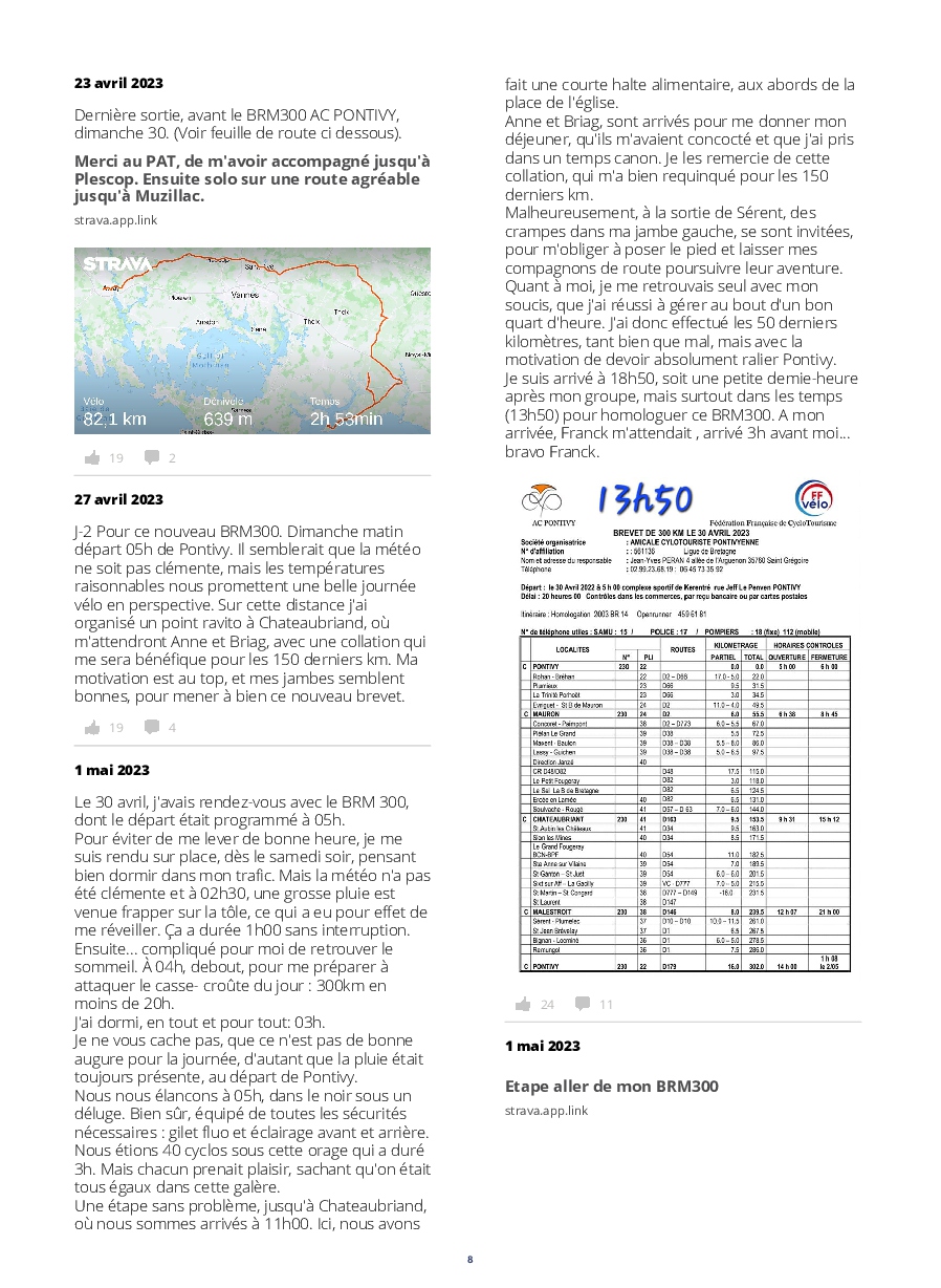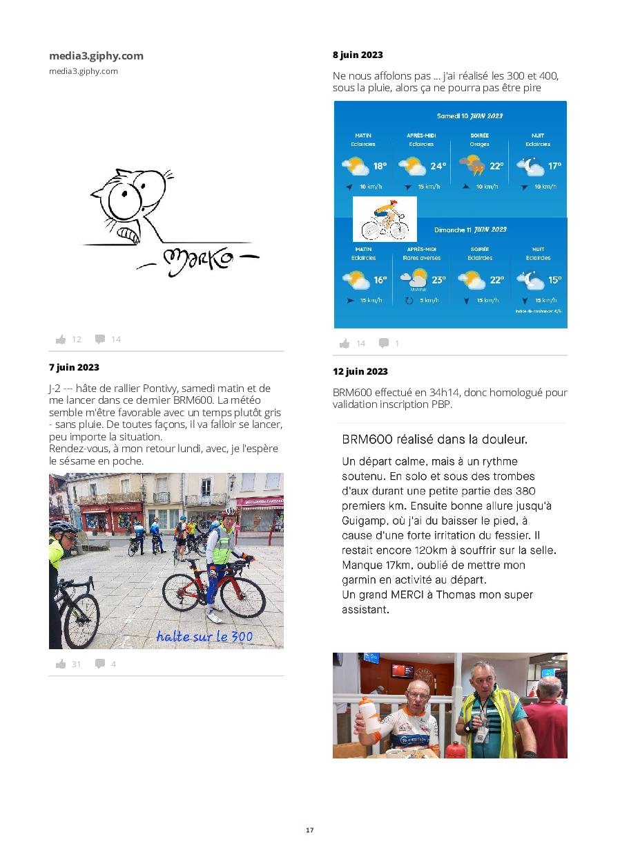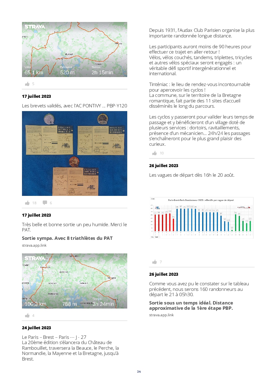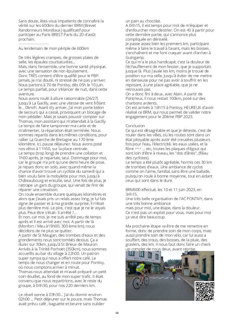Le lancement des concurrents est digne d'un grand départ du tour. De plus, l'implication des riverains tout au long de l'itinéraire, est extraordinaire ! Les accueils aux contrôles et les habitants offrants des rafraîchissements,++, nous permettent de réussir un PBP, qui nous paraît, au prima-bord, insurmontable.