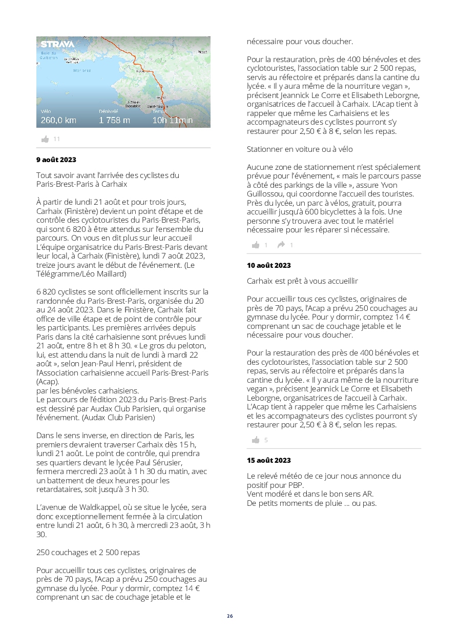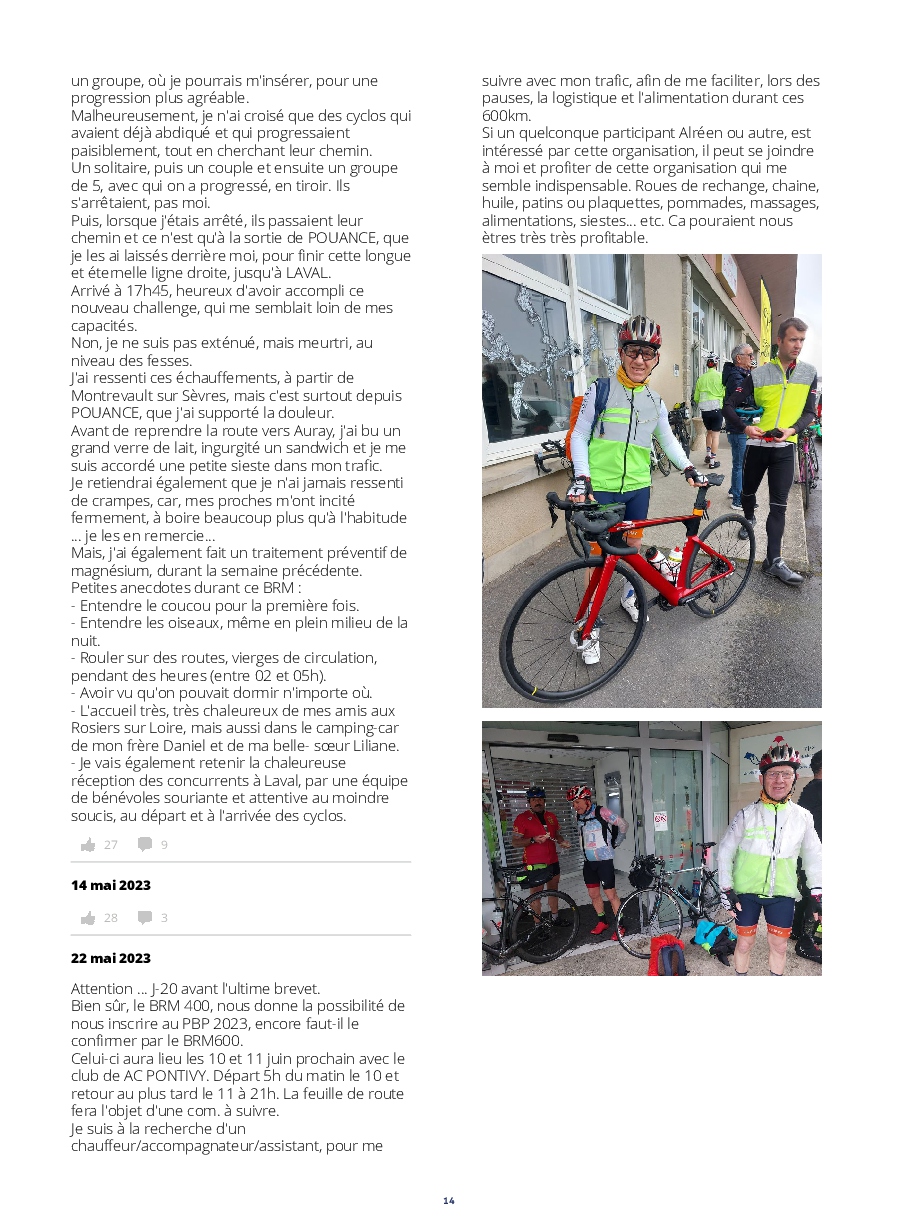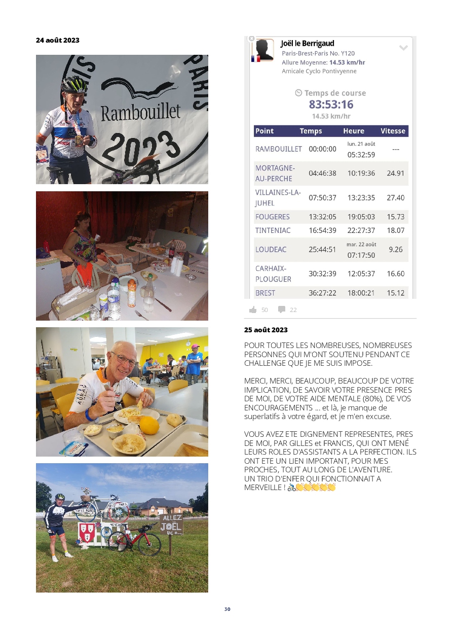 Le lancement des concurrents est digne d'un grand départ du tour. De plus, l'implication des riverains tout au long de l'itinéraire, est extraordinaire ! Les accueils aux contrôles et les habitants offrants des rafraîchissements,++, nous permettent de réussir un PBP, qui nous paraît, au prima-bord, insurmontable.