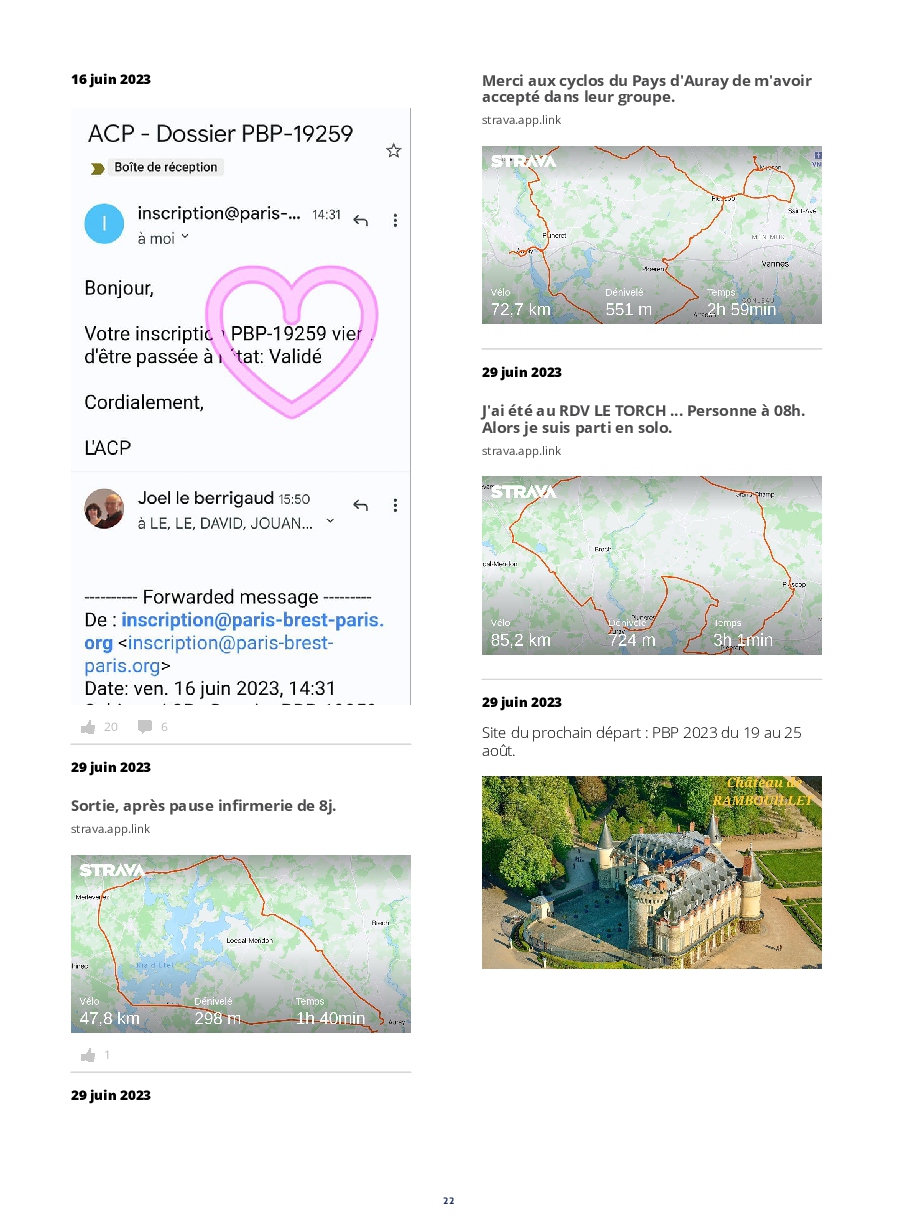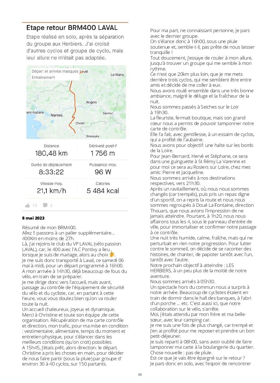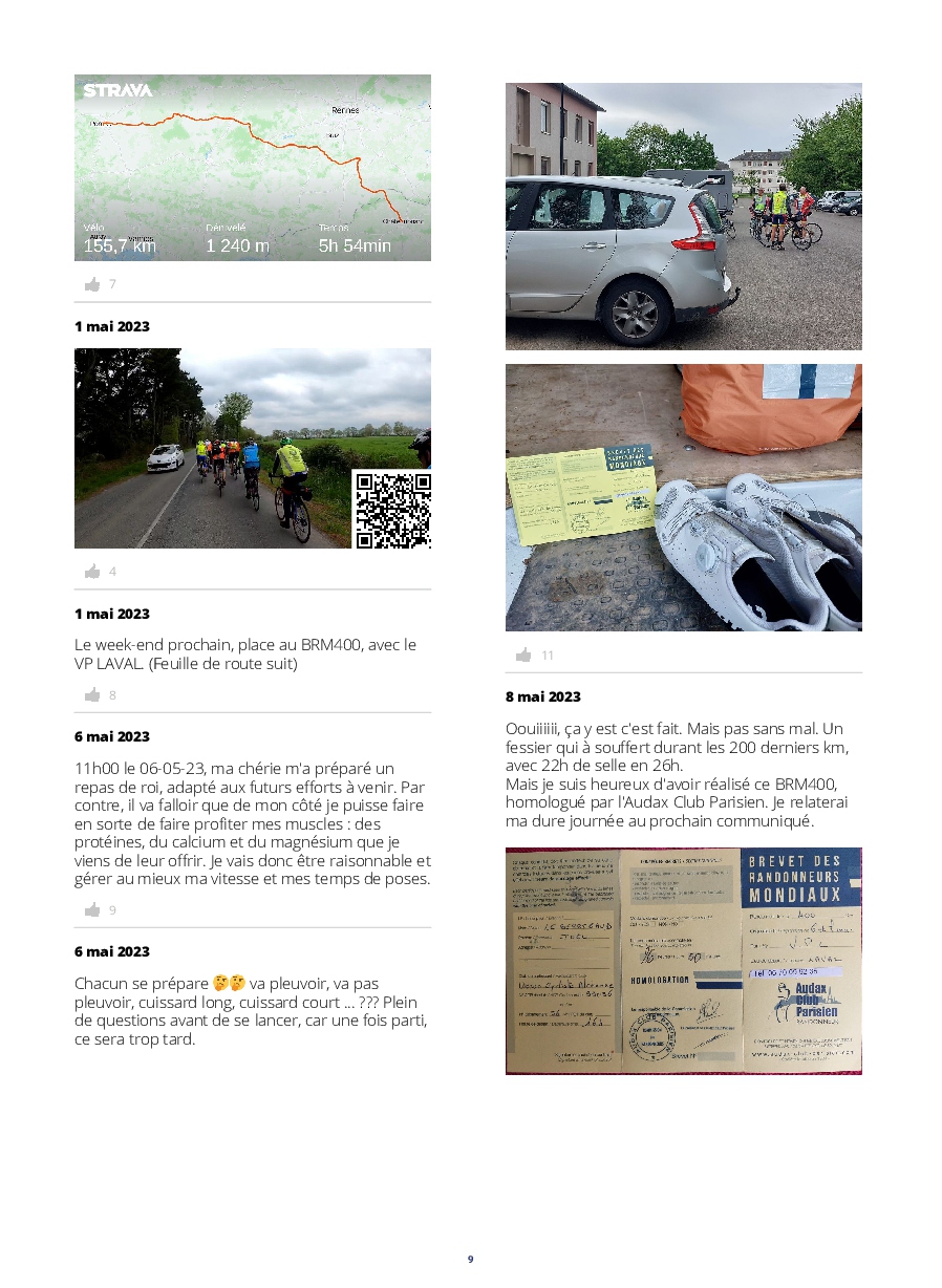 Le lancement des concurrents est digne d'un grand départ du tour. De plus, l'implication des riverains tout au long de l'itinéraire, est extraordinaire ! Les accueils aux contrôles et les habitants offrants des rafraîchissements,++, nous permettent de réussir un PBP, qui nous paraît, au prima-bord, insurmontable.