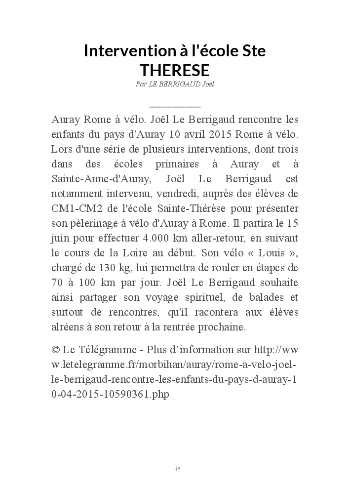 AURAY - ROME à VELO