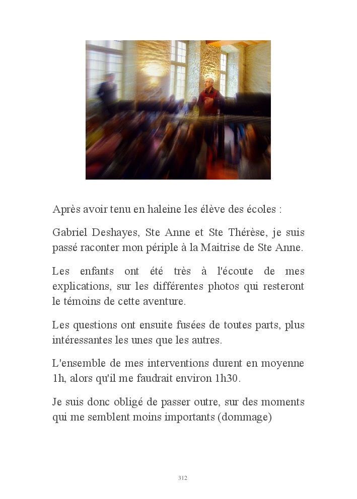 J'ai, bien sûr fait un condensé de ce que j'ai vécu tout au long de mon chemin, mais je crois que lorsqu'on a réalisé un tel projet, il nous faudrait environ 2h pour le raconter