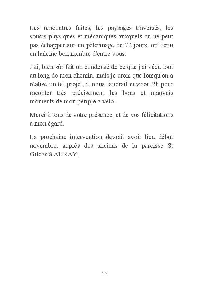 Les rencontres faites, les paysages traversés, les soucis physiques et mécaniques auxquels on ne peut pas échapper sur un pèlerinage de 72 jours, ont tenu en haleine bon nombre d'entre vous.