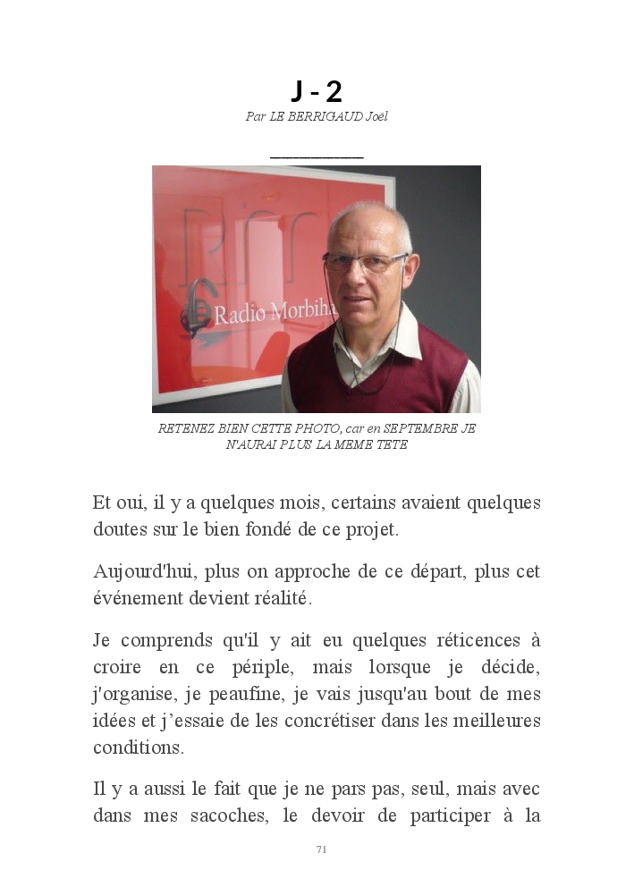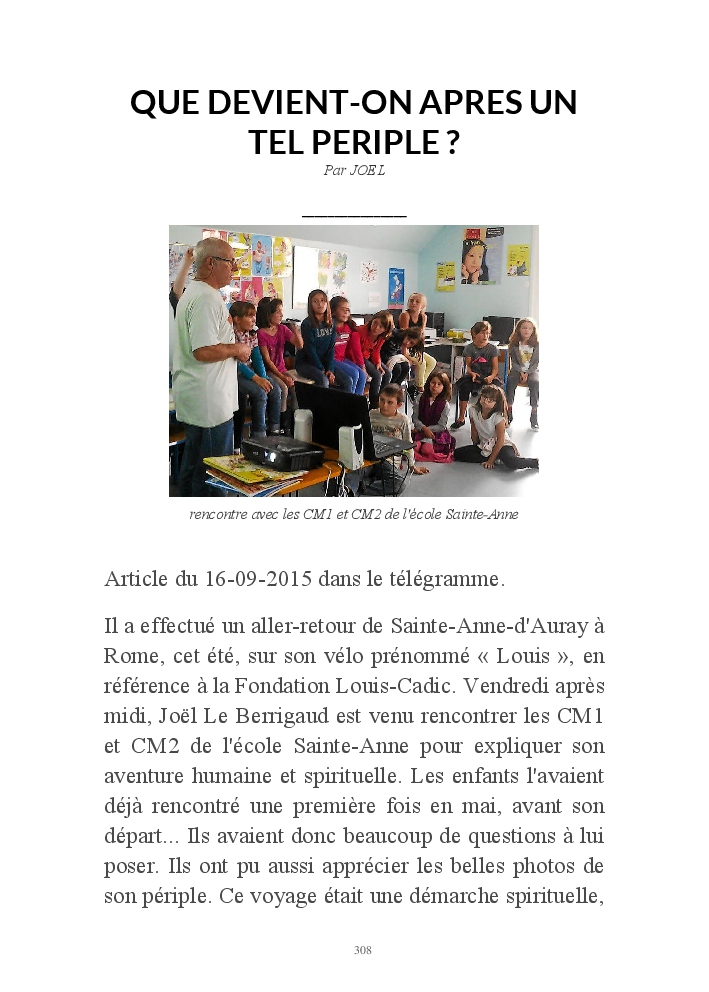 Les rencontres faites, les paysages traversés, les soucis physiques et mécaniques auxquels on ne peut pas échapper sur un pèlerinage de 72 jours, ont tenu en haleine bon nombre d'entre vous.