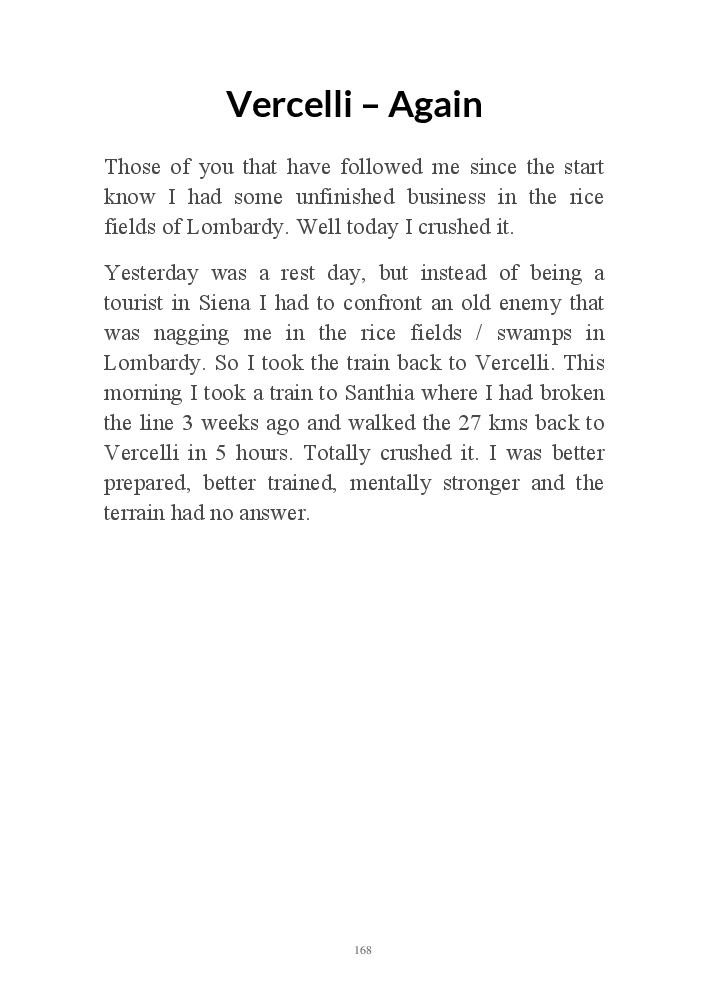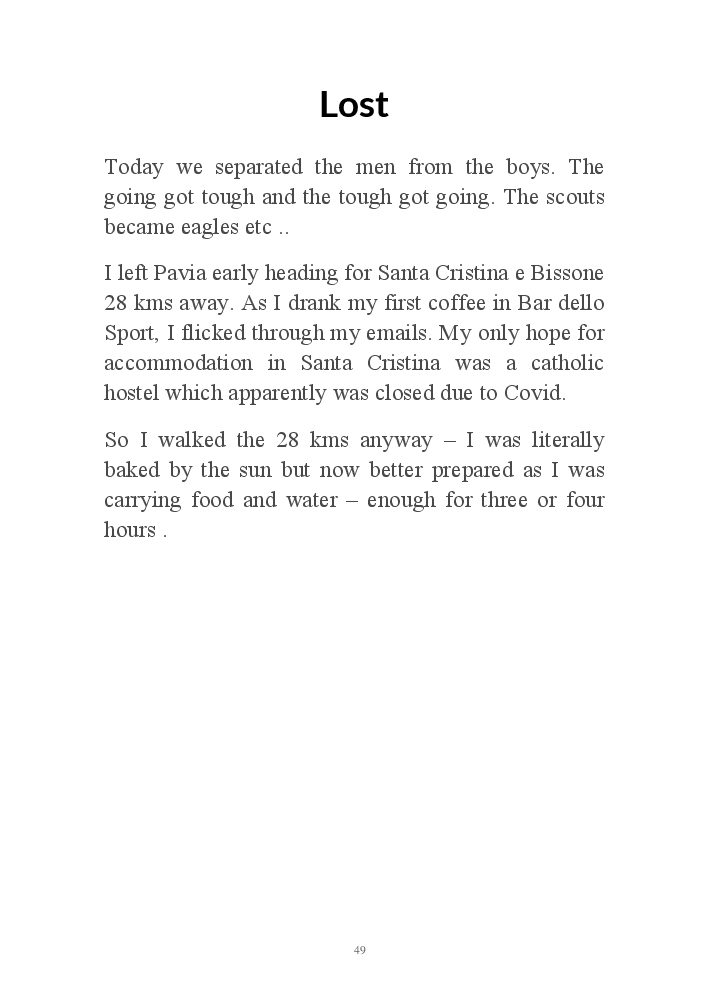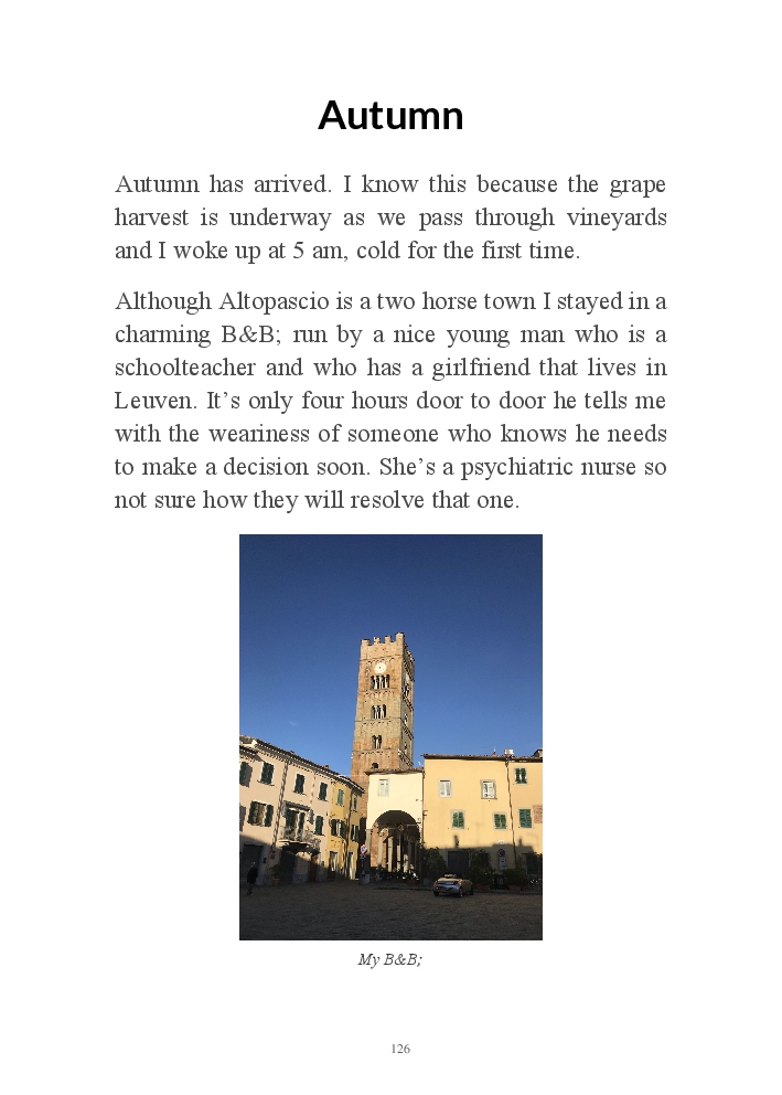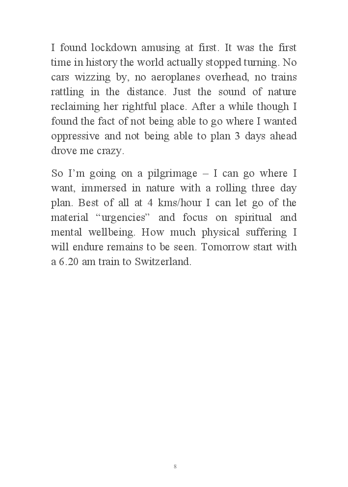 This is the story of my 1000 kms pilgrimage from Switzerland to Rome : the people I meet, things I learn about myself, Italy and life! October 2020