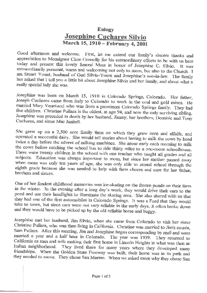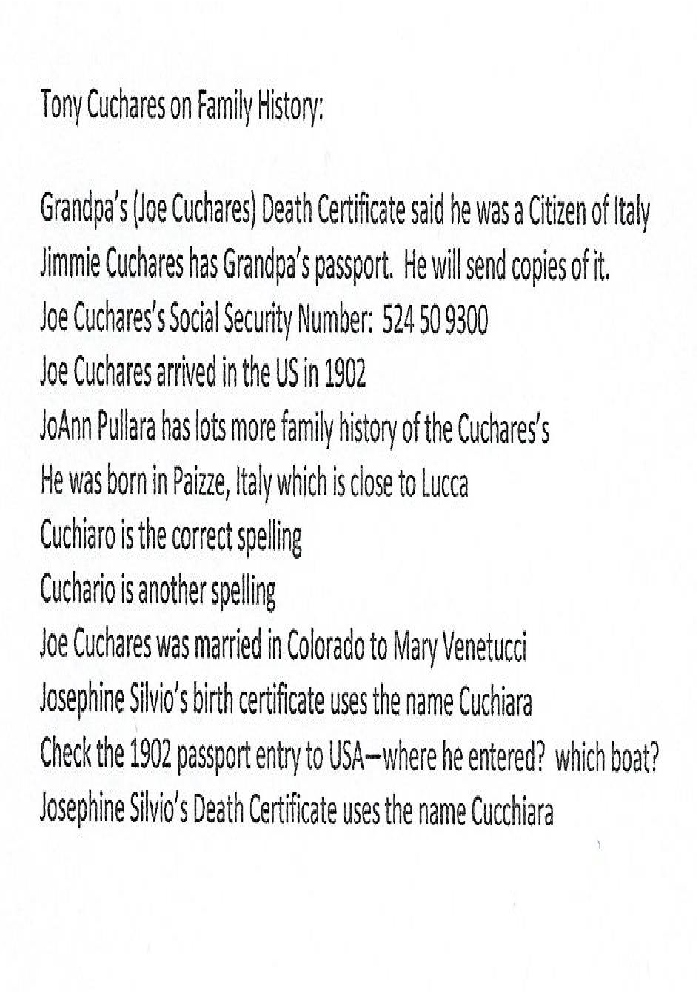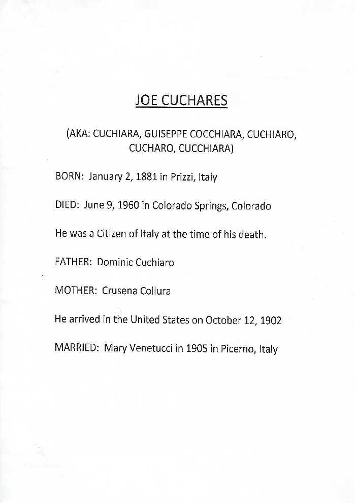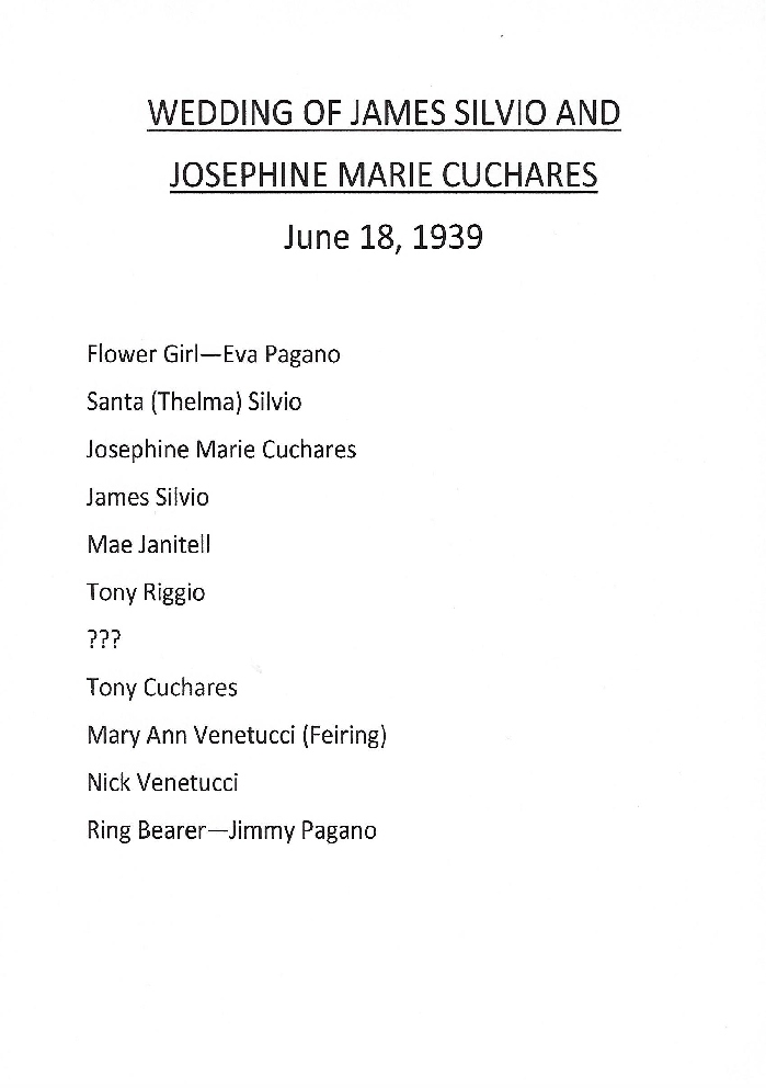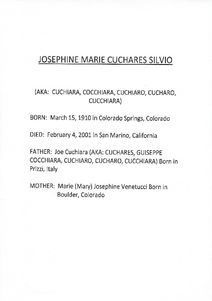 Follow the family lineage of James Silvio and Josephine Marie Cuchares. Learn how both families of Italian immigrants came to the United States to follow their American dream and created a beautiful family in the process.