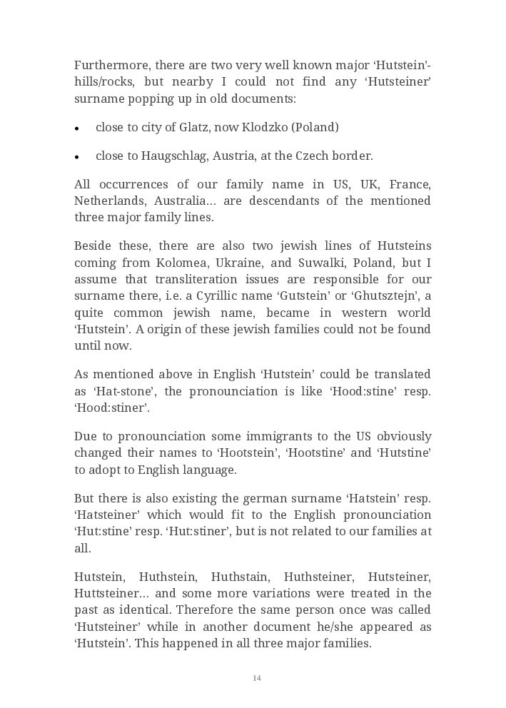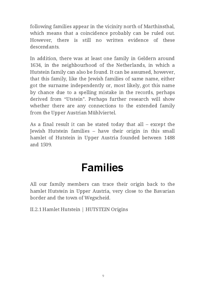 Hutstein Origins is dedicated to the worldwide Hutstein – Huthstein – Hutsteiner – Huthsteiner families, a research platform to find their origins, ancestors and descendants, their corresponding relations and environment.