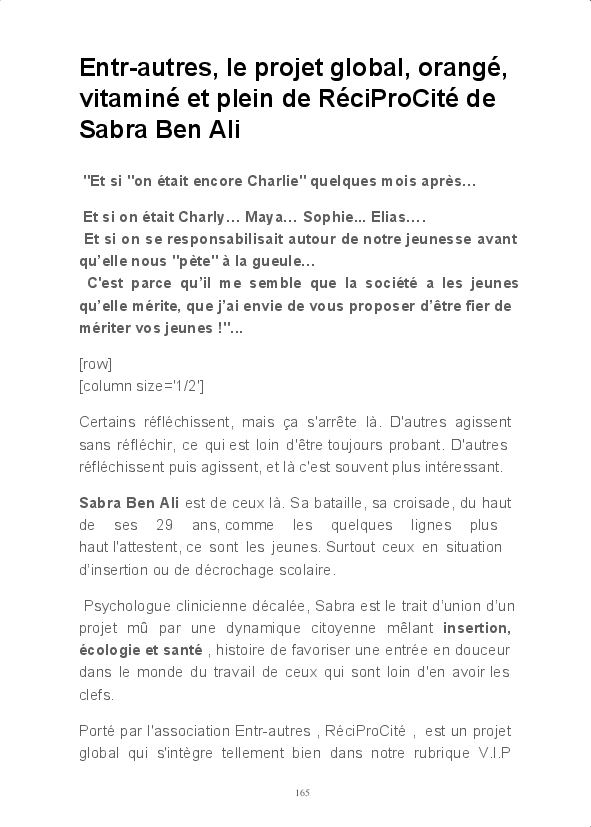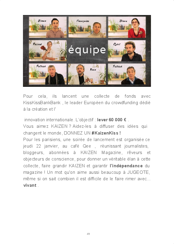 Venue de tous les horizons, sa team se fait fort, autour de sa rédactrice en chef, Isabelle Camus, de partager ce qui l’inspire et donne envie d’y croire = des idées à relayer, des lignes à faire bouger... Bref ! Partir à la découverte des initiatives positives d'acteurs audacieux qui veulent donner du sens et de la beauté à notre monde en crise. Ce monde que nous pouvons, avec juste un peu de jugeote, mot au parfum suranné, mais au pouvoir immense dont nous sommes tous pourvus, RÉENCHANTER.