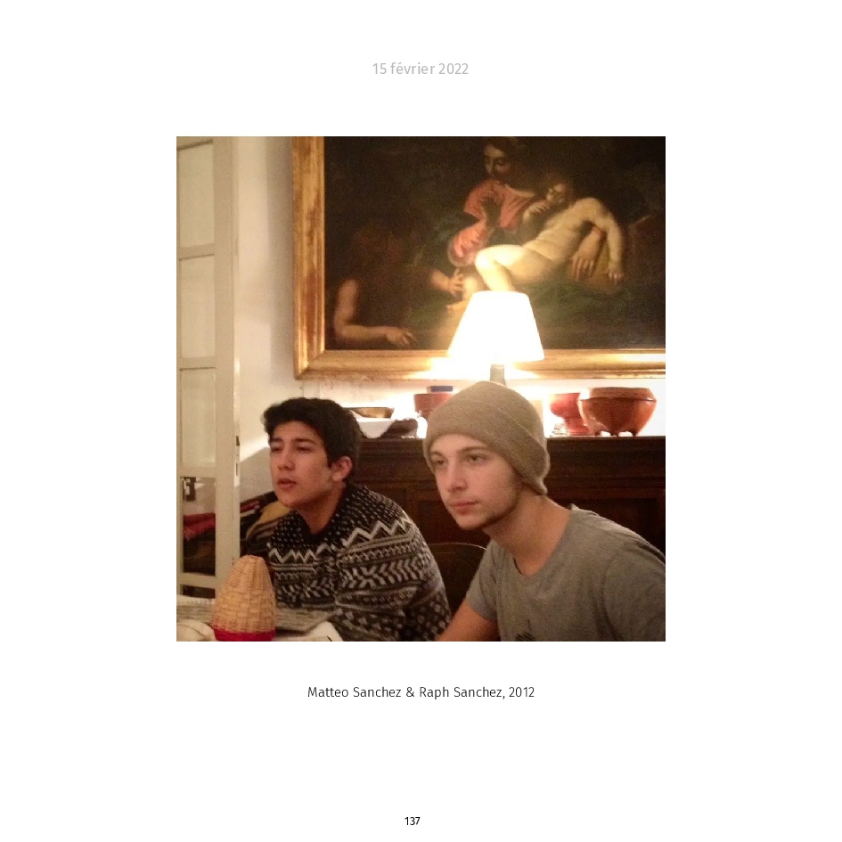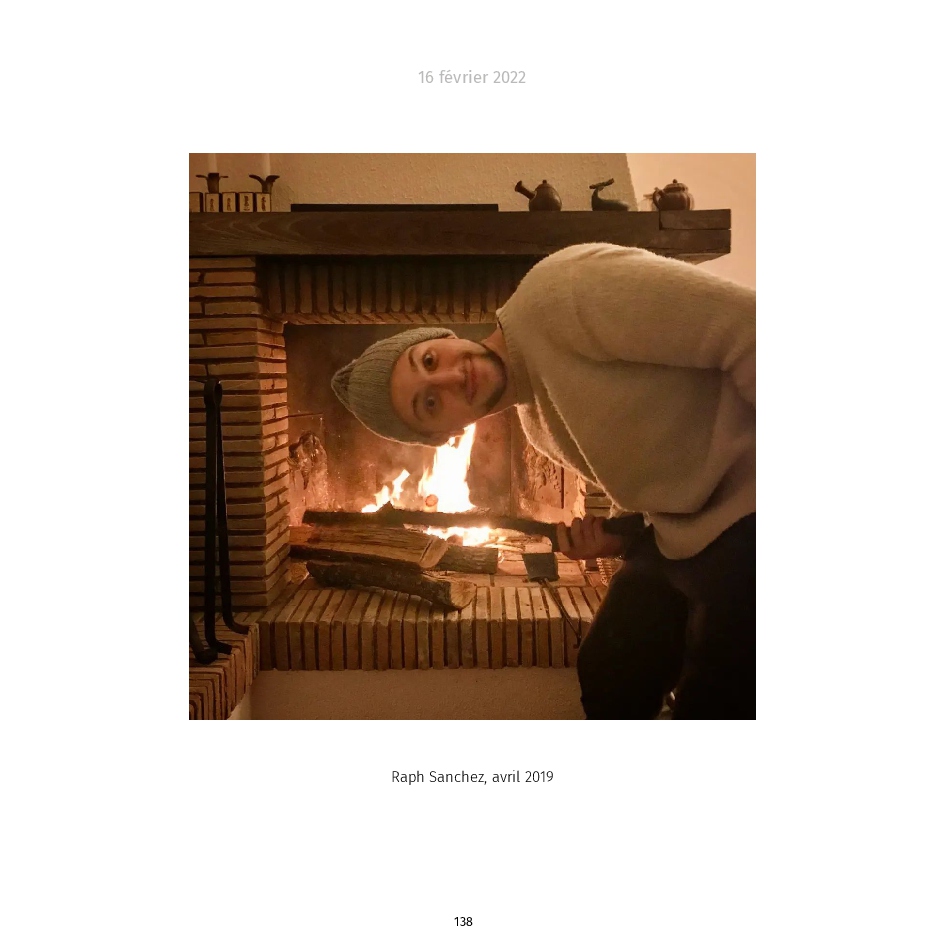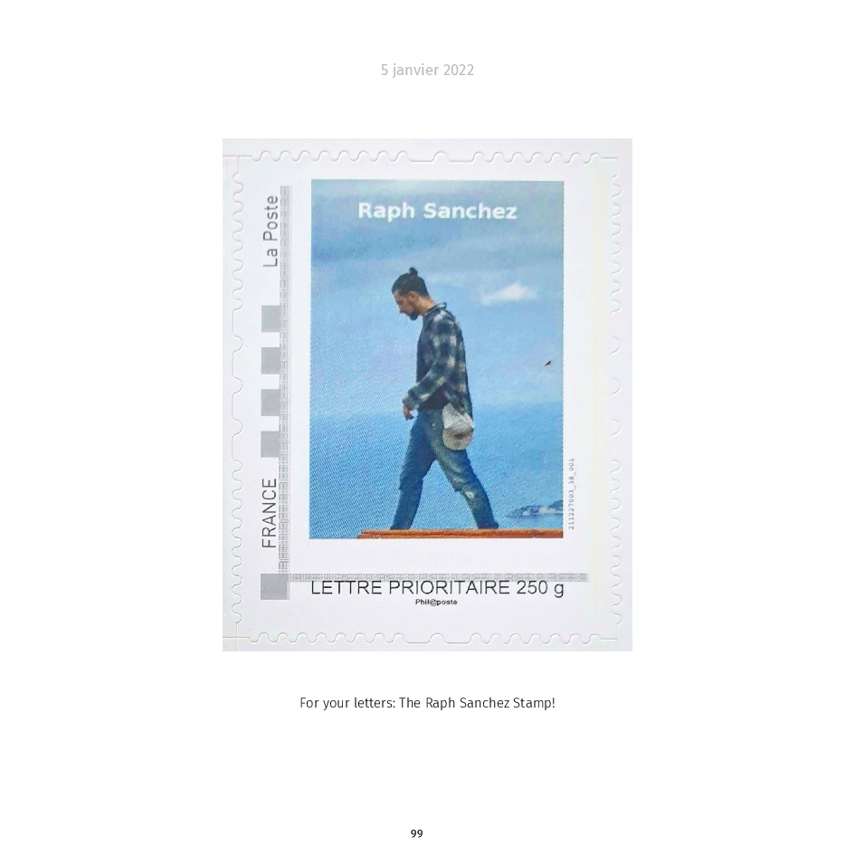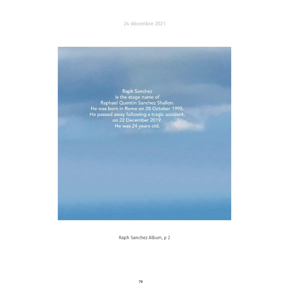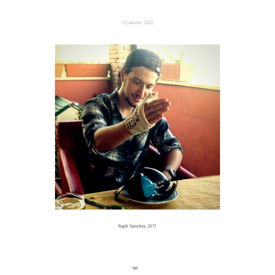 Ce livre réunit toutes les images publiées par Marc Sanchez entre le 29 novembre 2021 et le 21 mars 2022 sur le compte Instagram dédié à Raph Sanchez.