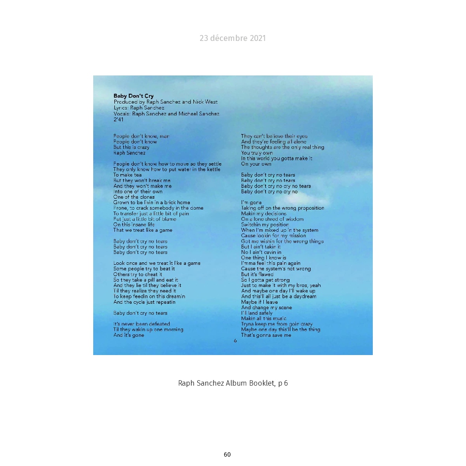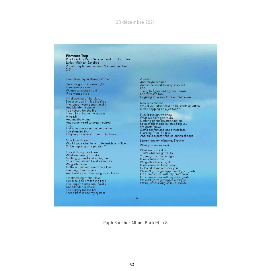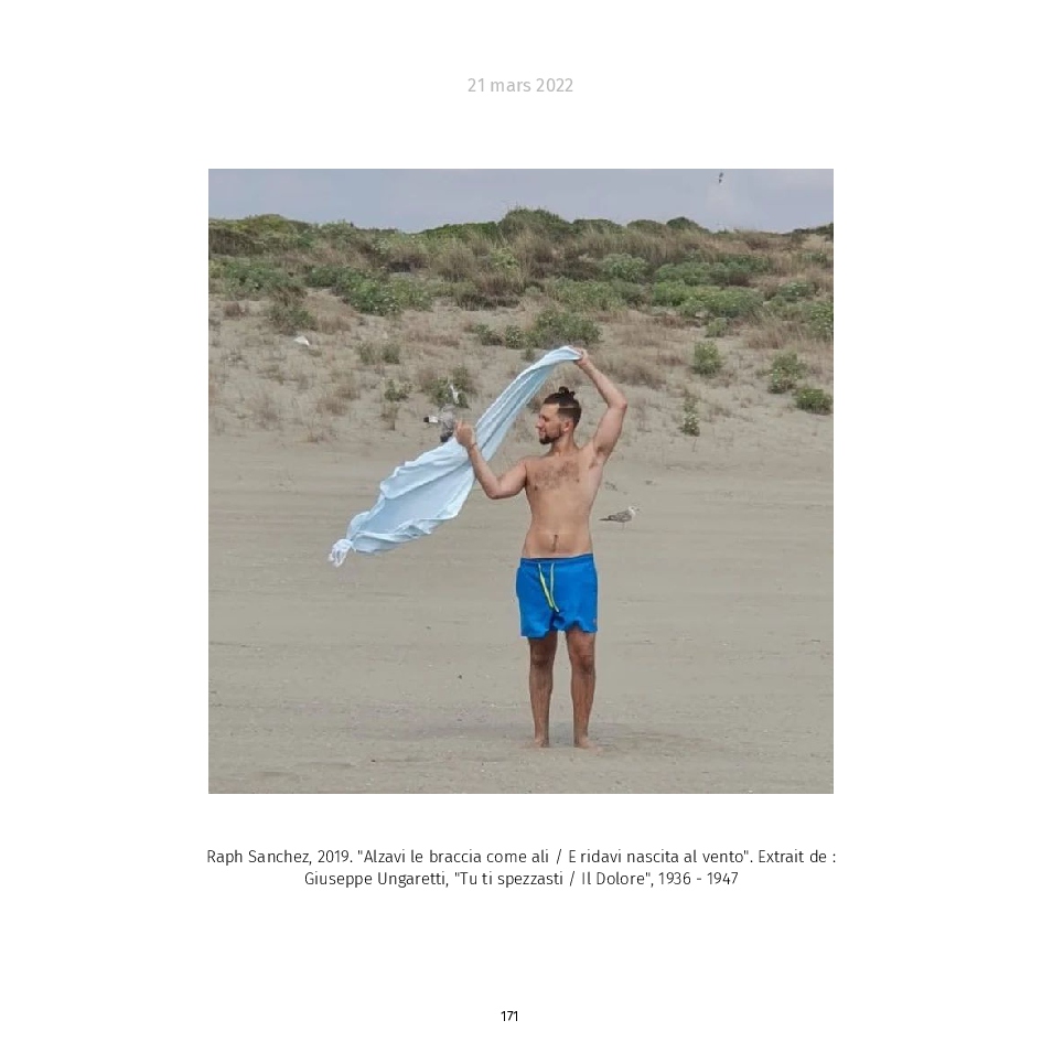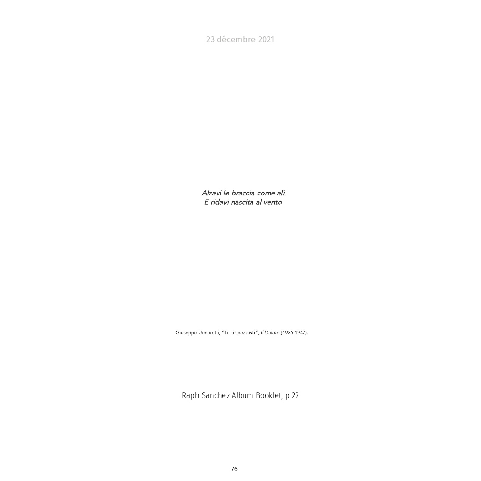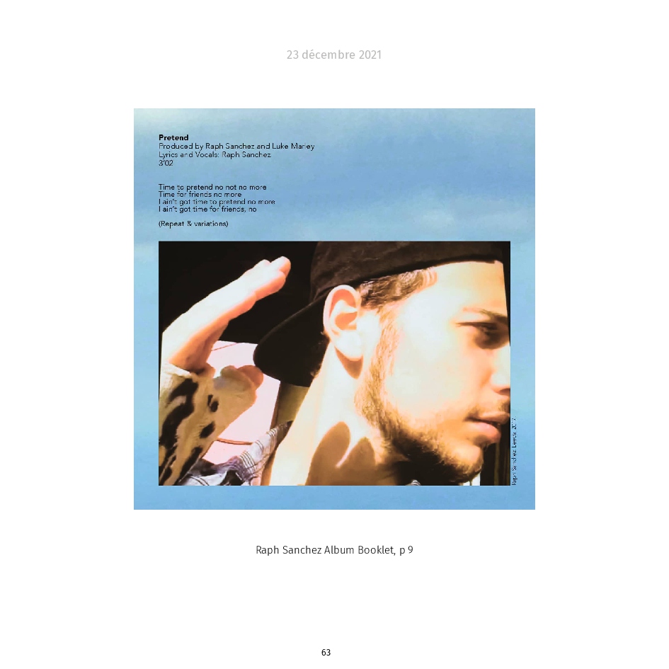 Ce livre réunit toutes les images publiées par Marc Sanchez entre le 29 novembre 2021 et le 21 mars 2022 sur le compte Instagram dédié à Raph Sanchez.