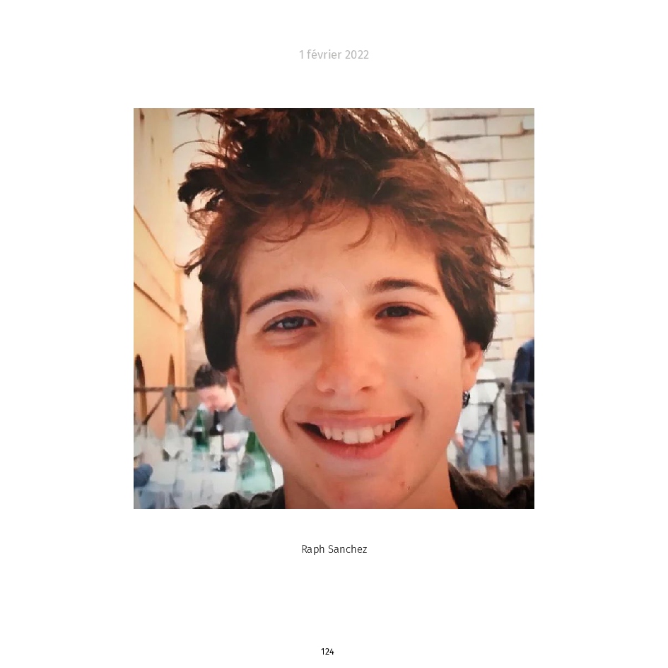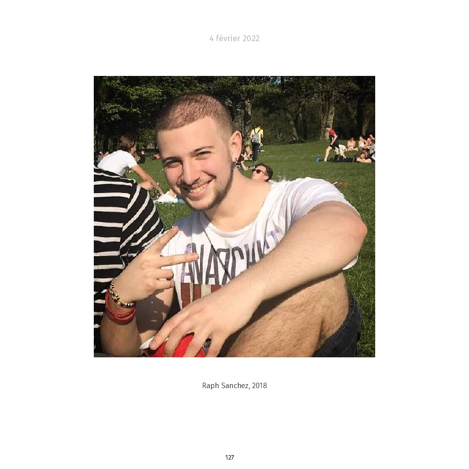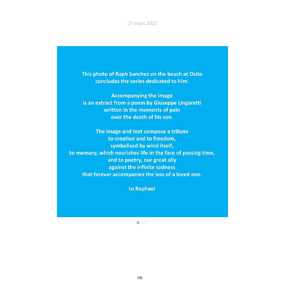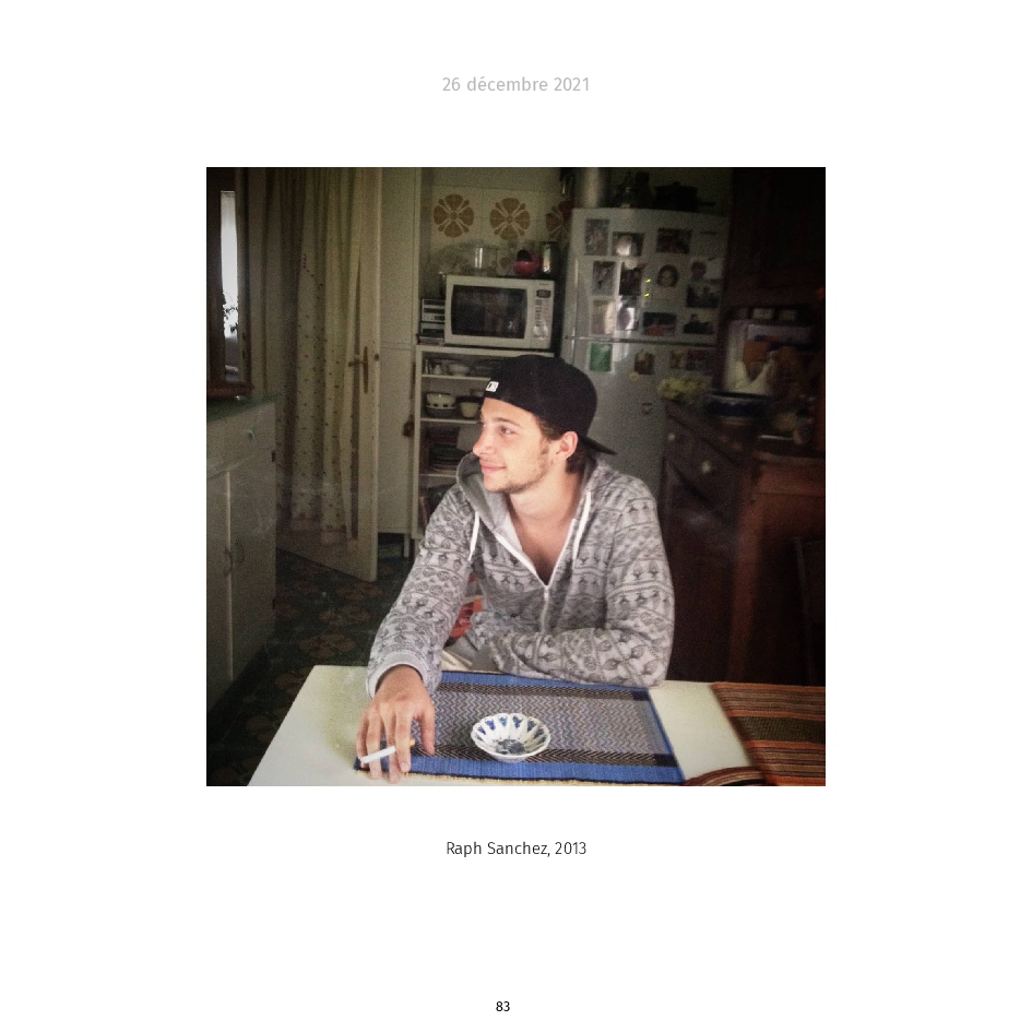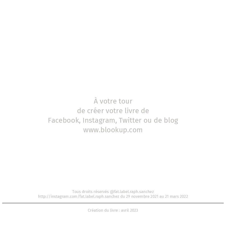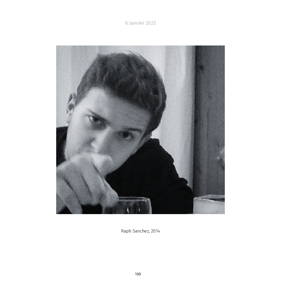 Ce livre réunit toutes les images publiées par Marc Sanchez entre le 29 novembre 2021 et le 21 mars 2022 sur le compte Instagram dédié à Raph Sanchez.