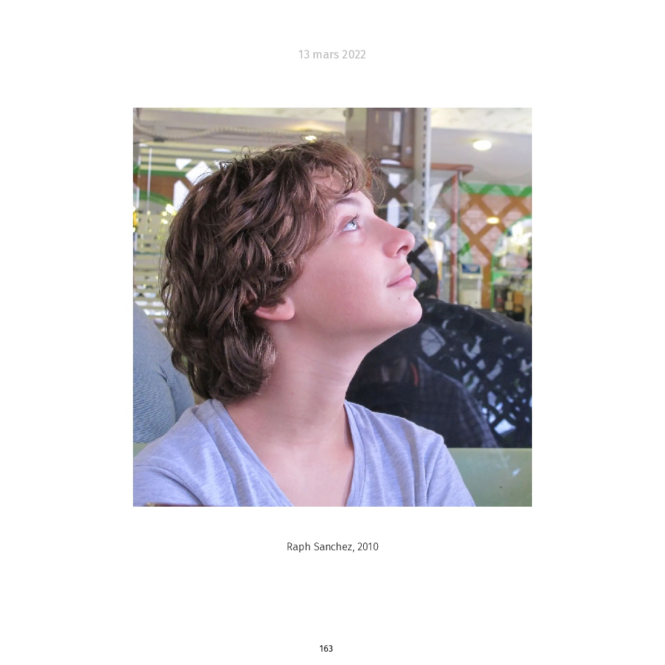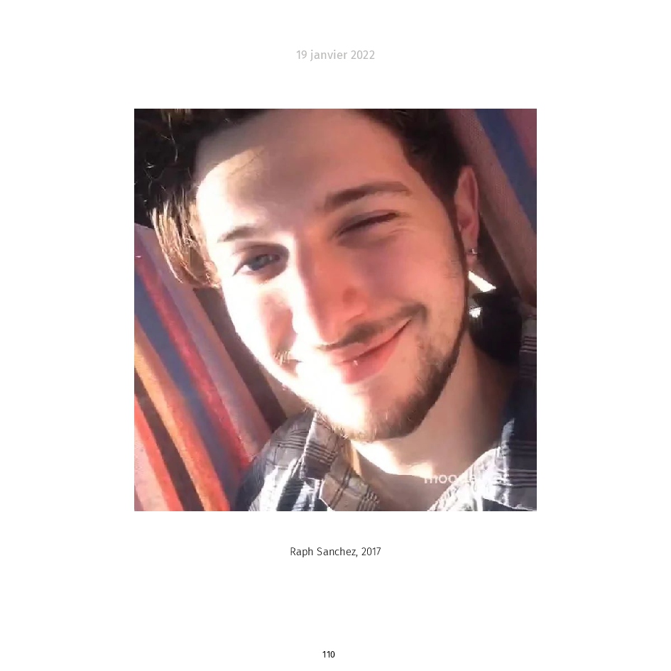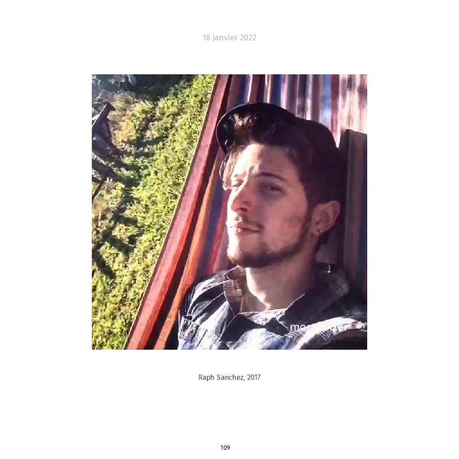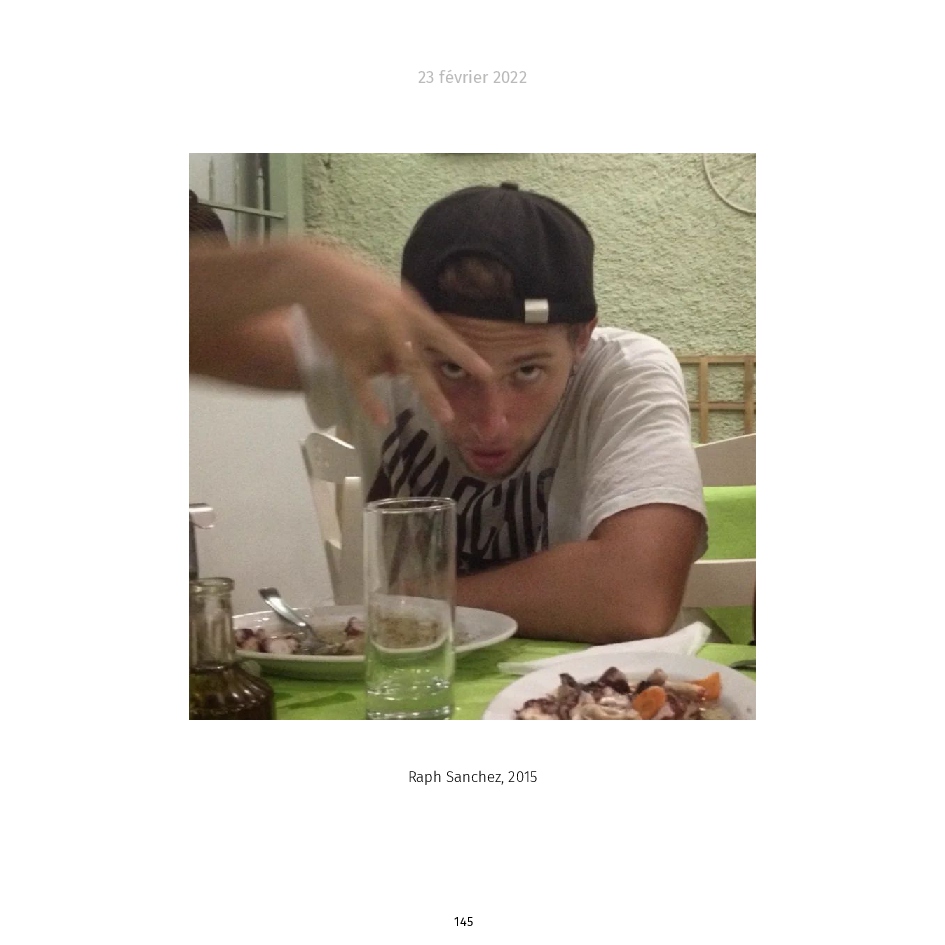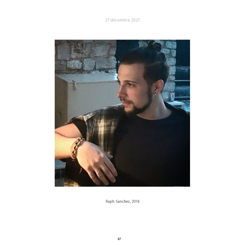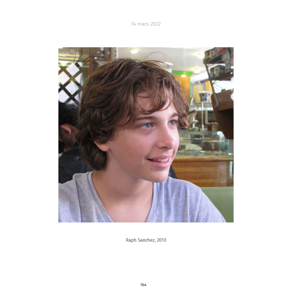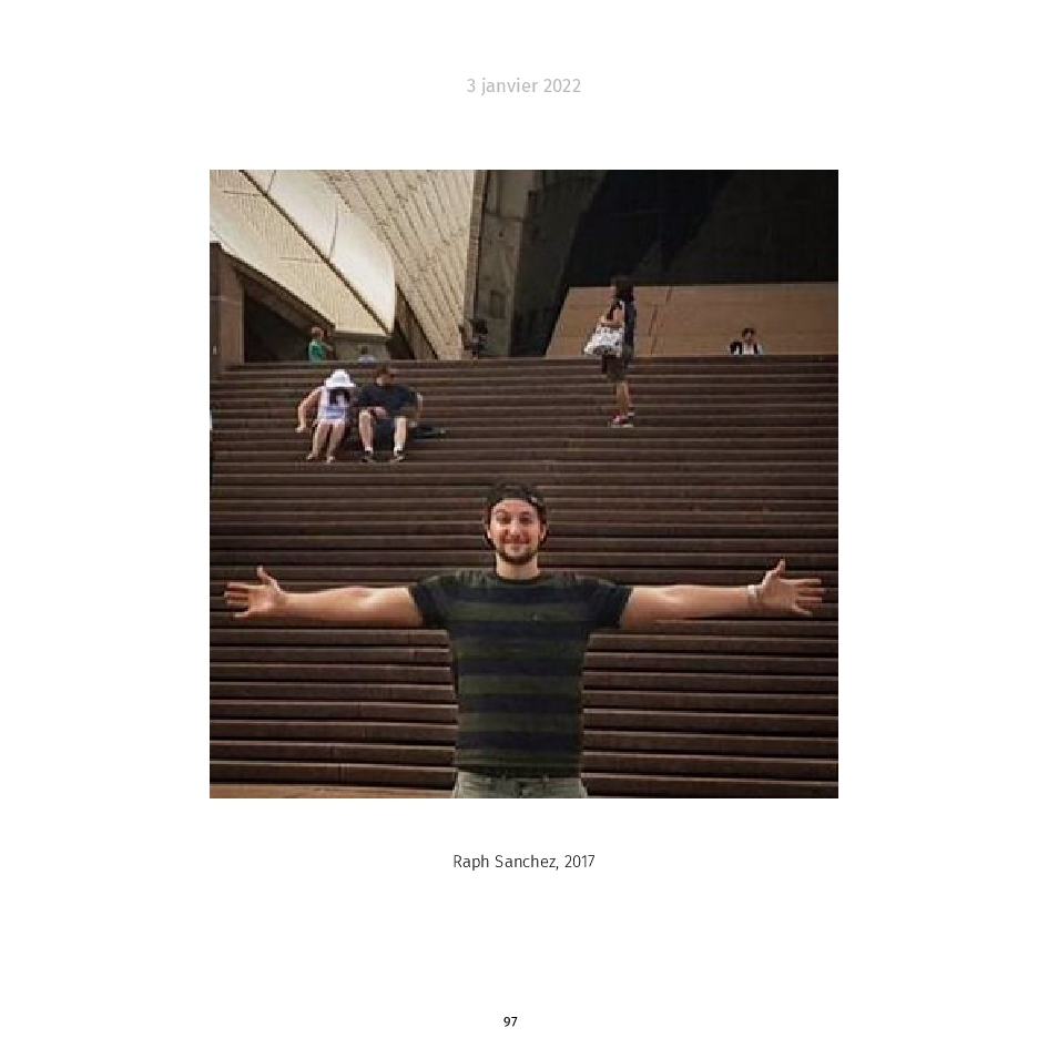Ce livre réunit toutes les images publiées par Marc Sanchez entre le 29 novembre 2021 et le 21 mars 2022 sur le compte Instagram dédié à Raph Sanchez.