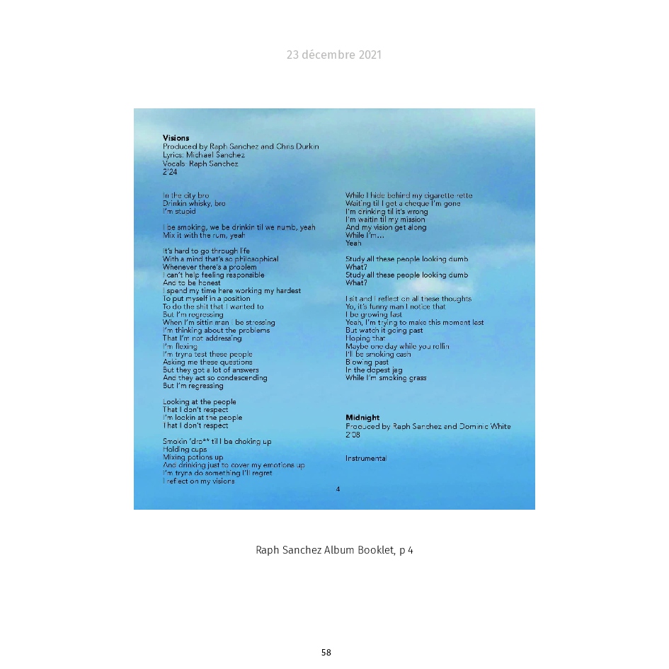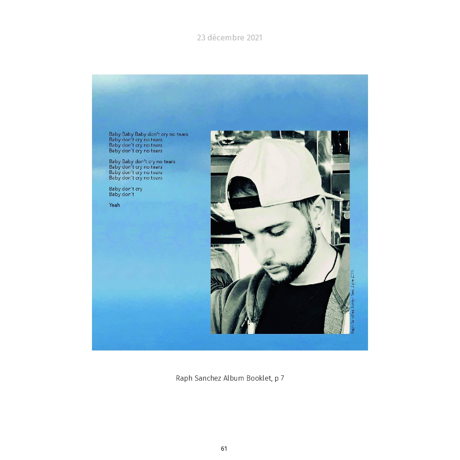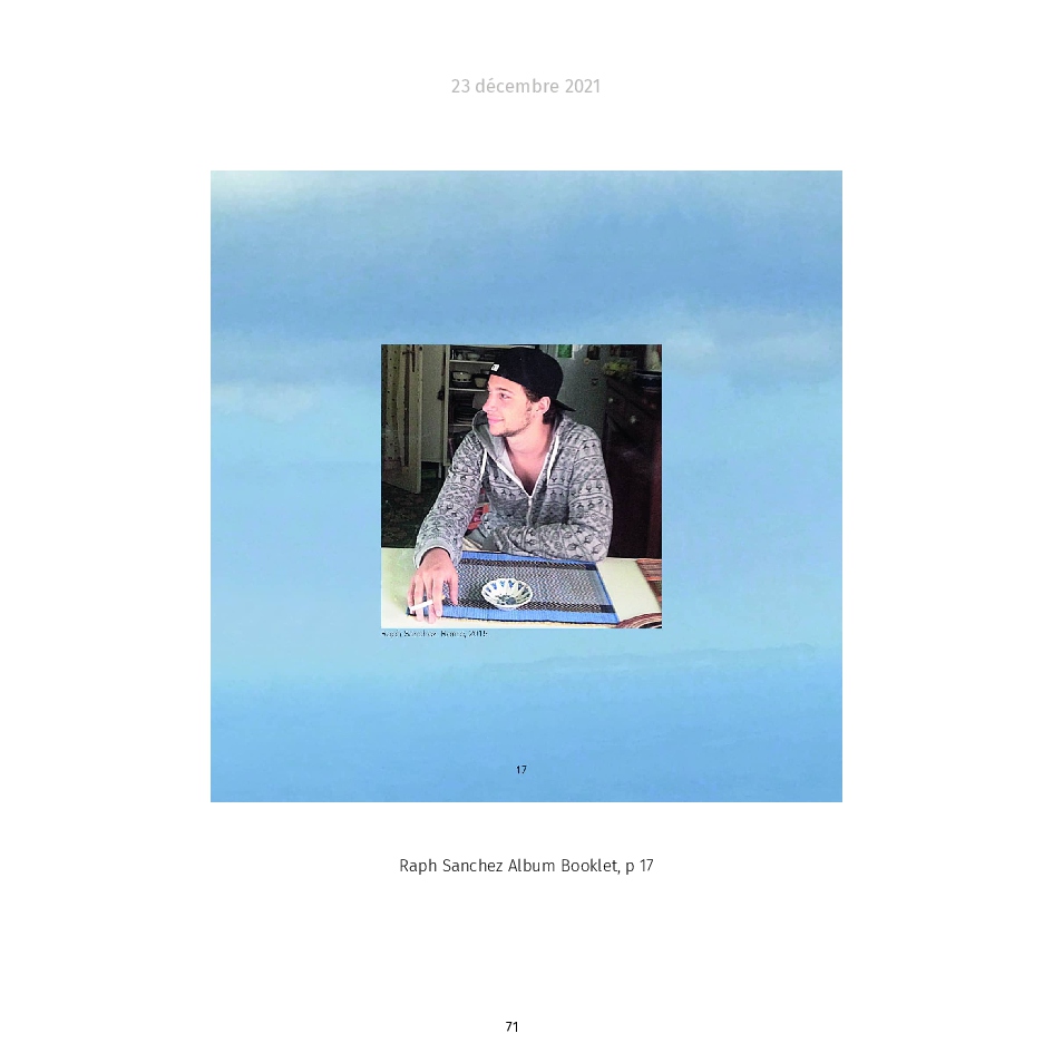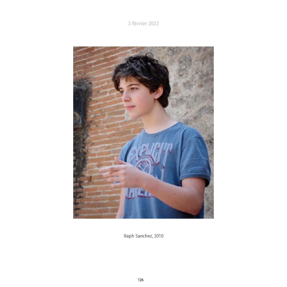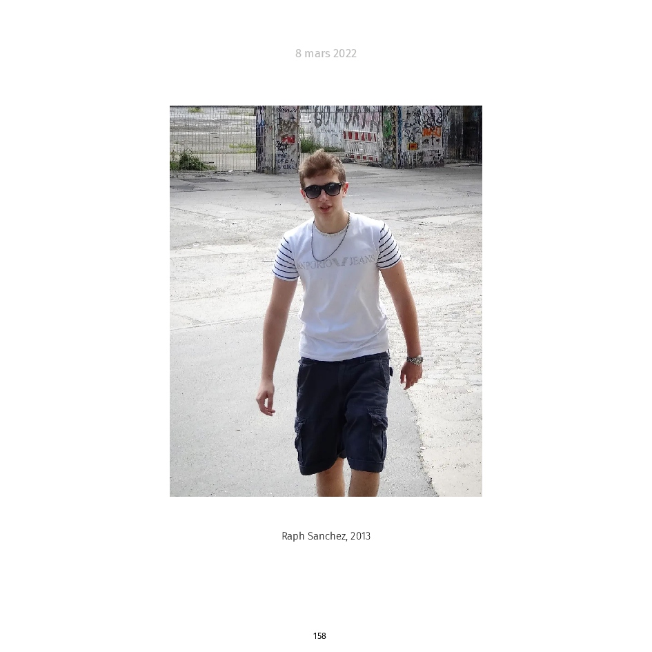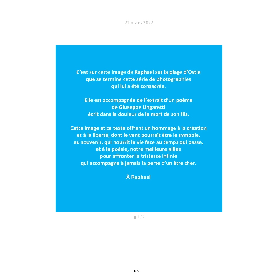 Ce livre réunit toutes les images publiées par Marc Sanchez entre le 29 novembre 2021 et le 21 mars 2022 sur le compte Instagram dédié à Raph Sanchez.