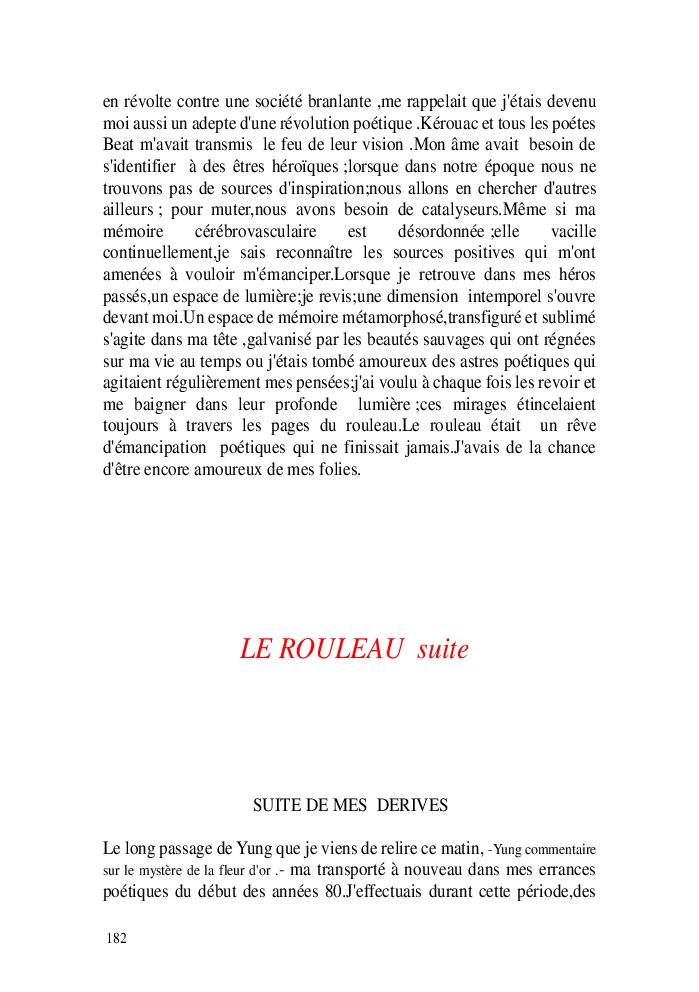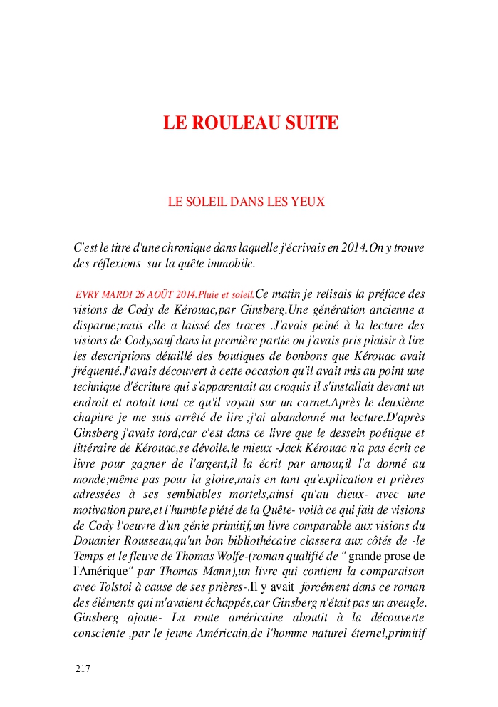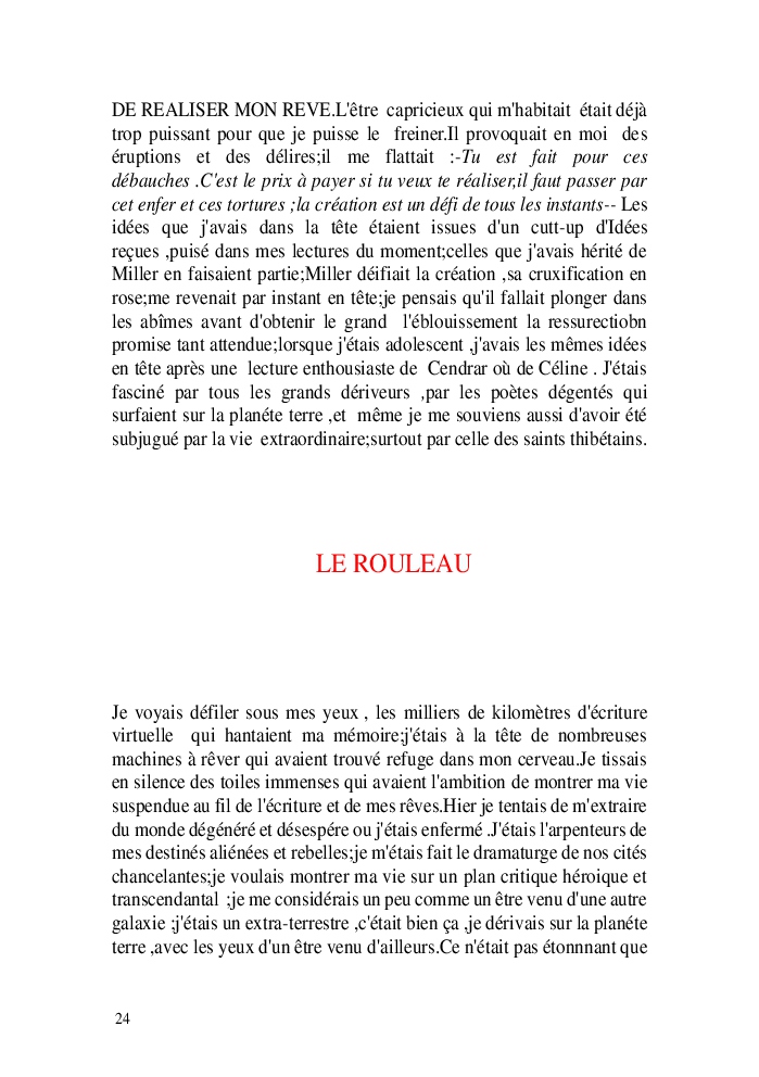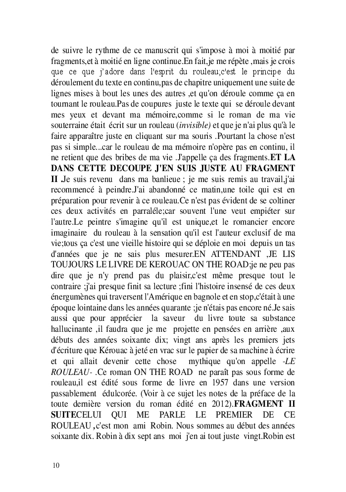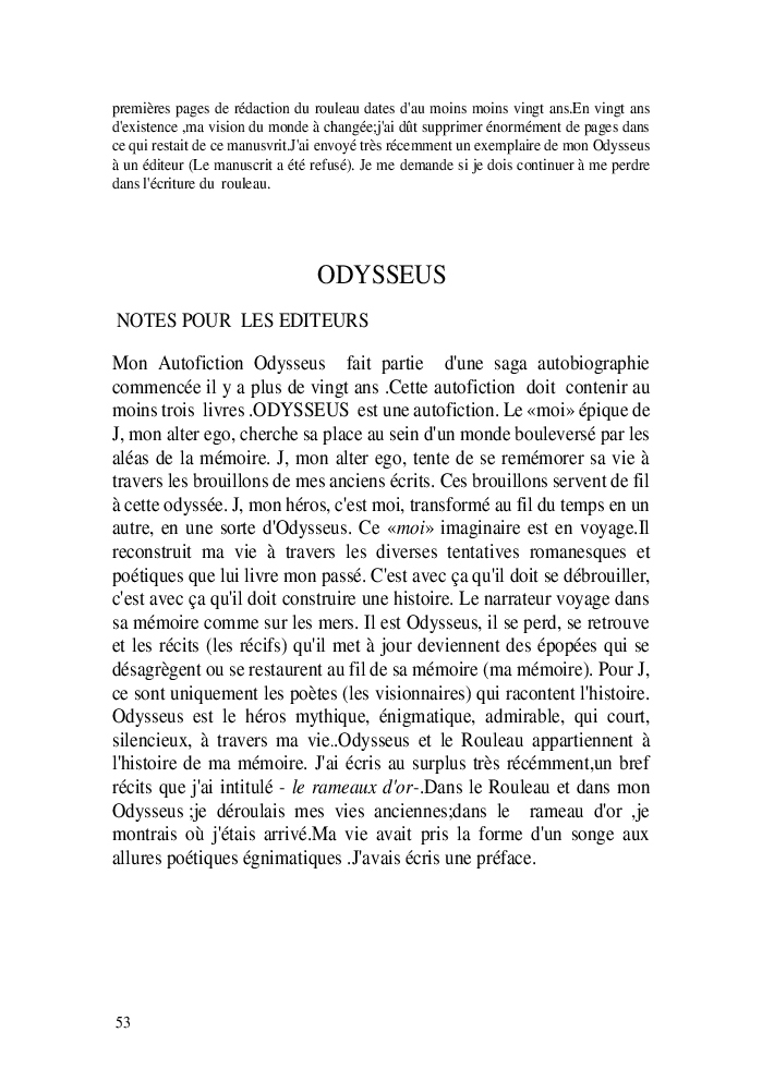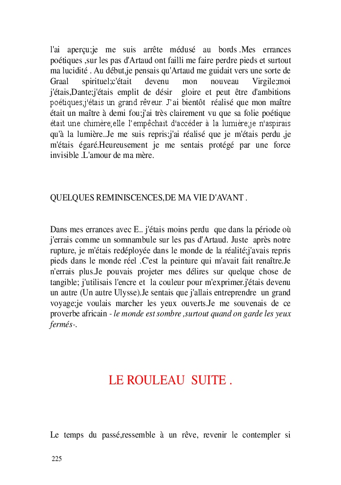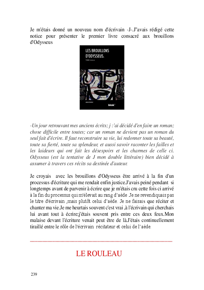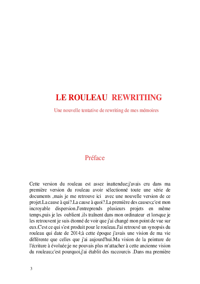 Cette nouvelle version du rouleau n'est nouvelle que pour moi qui connait les anciennes.J'ai écris différentes versions du rouleau durant vingt ans.Très récemment j'ai opéré des coupes et des transformation dans mon manuscrit et cela a donné un nouveau regard.Au départ le rouleau était une suite de récits qui étaient destinés a retracer mes vies alternatives avec un clin d'oeil prononcé en direction de Kérouac et de son fameux rouleau (on the road) . Mes récits ont bifurqués et ont pris un tour nouveau ma route c'est élargie;entre temps j'avais fait la rencontre d'Odysseus,et ma vie avait pris une autre direction