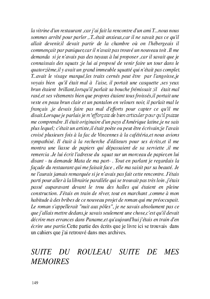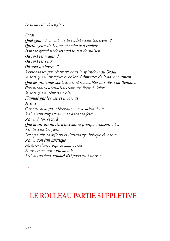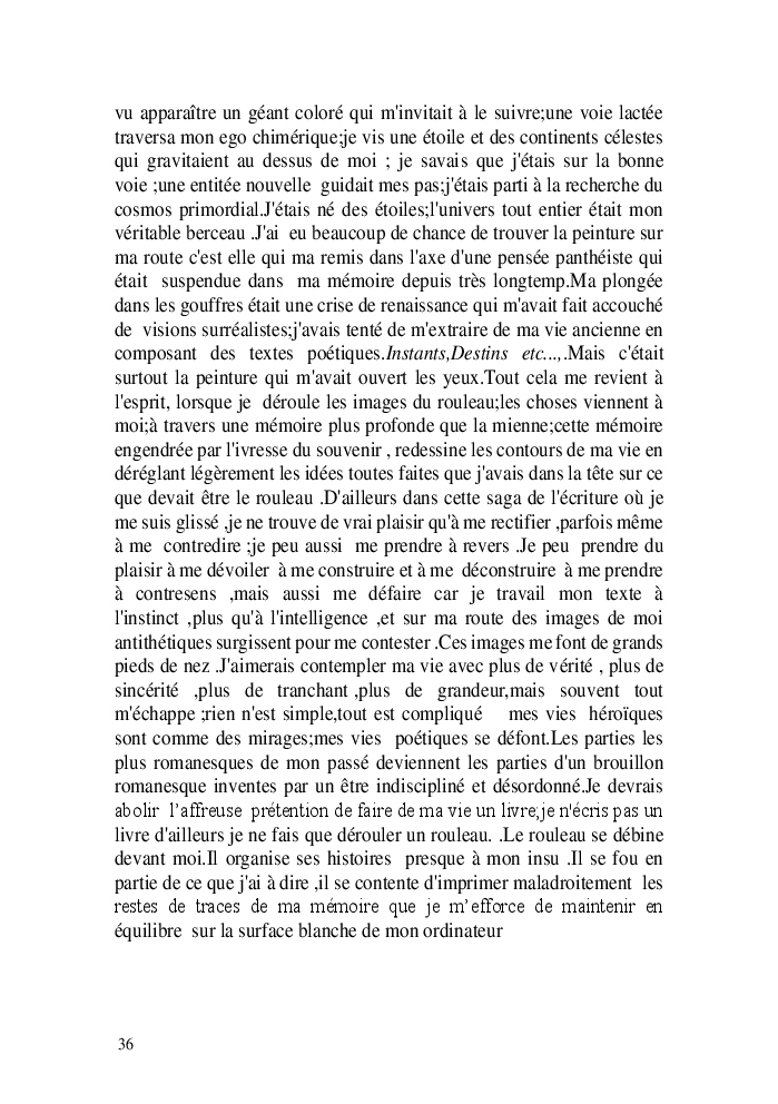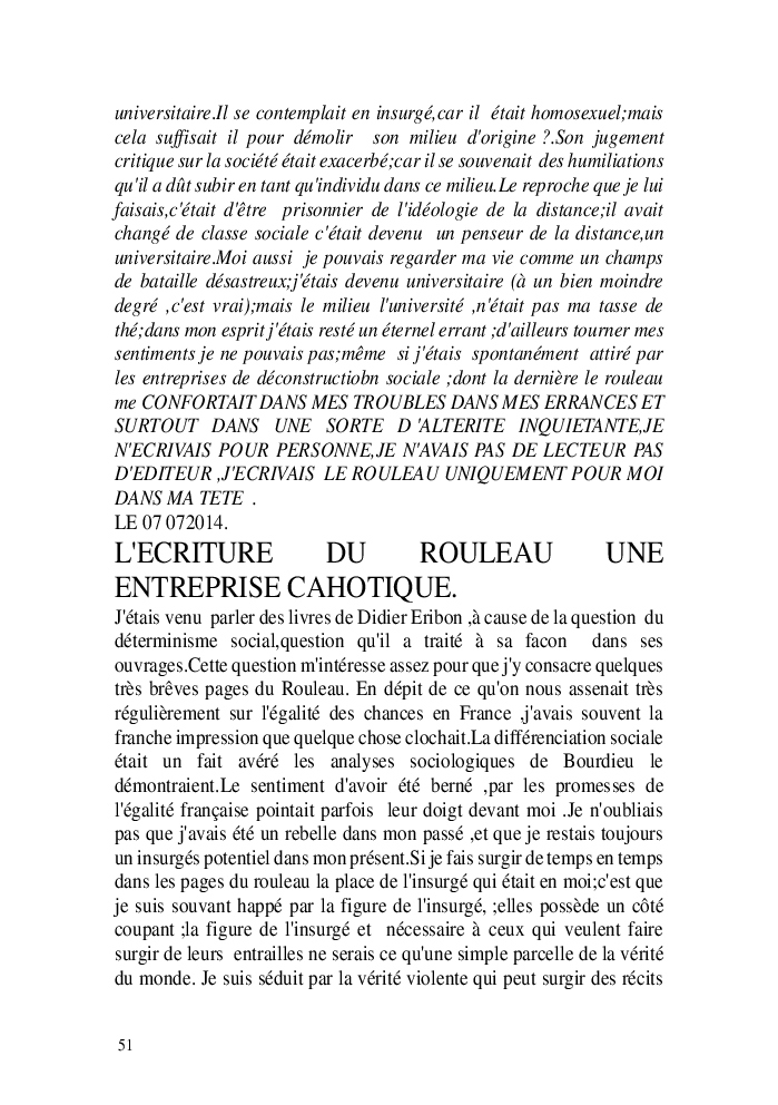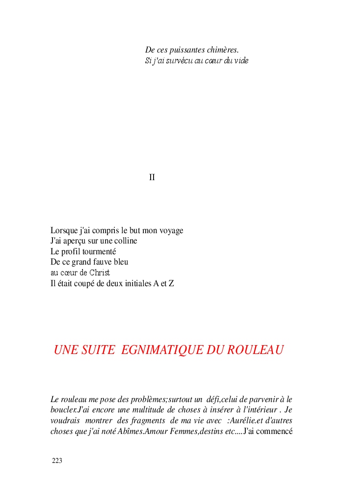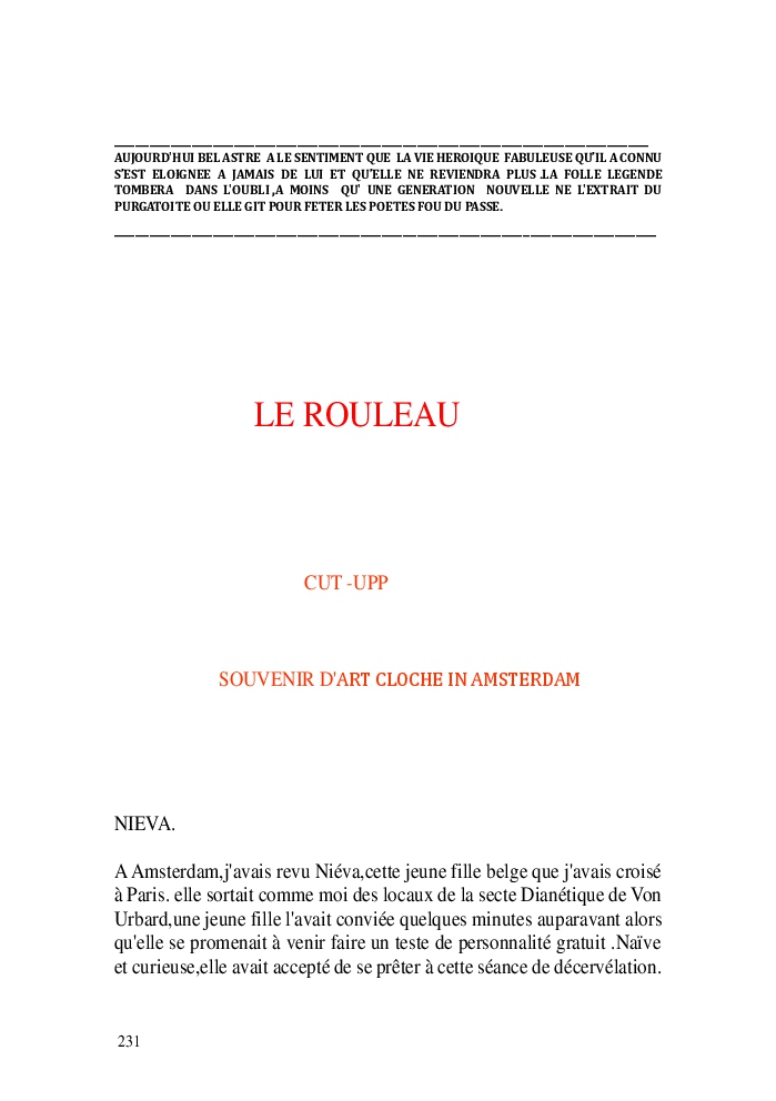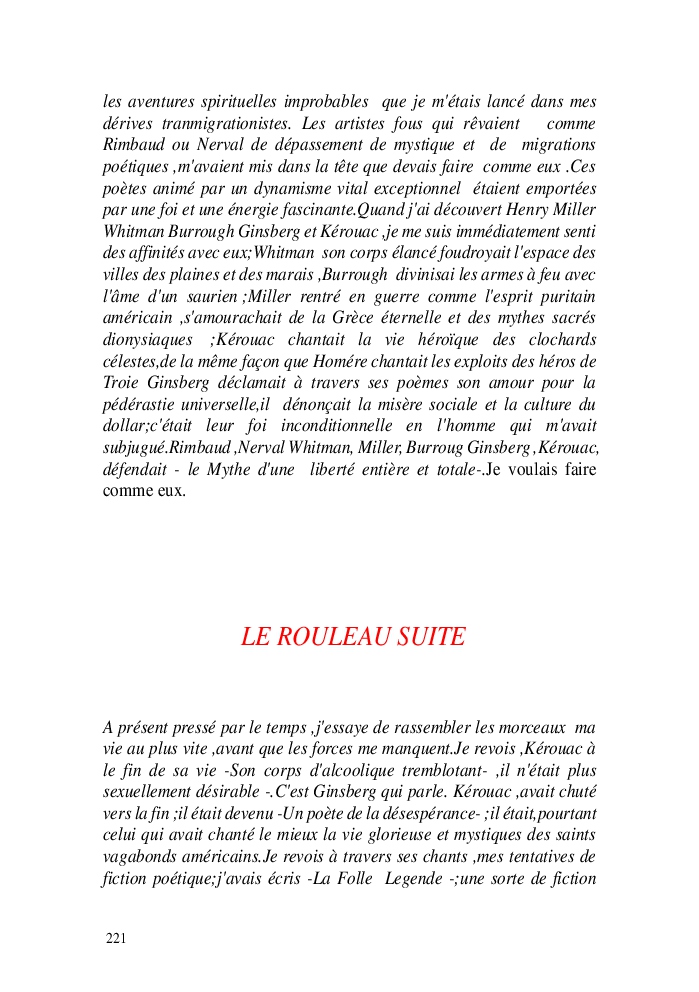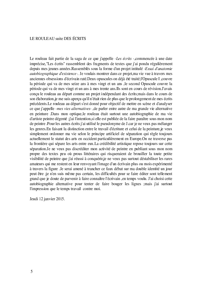 Cette nouvelle version du rouleau n'est nouvelle que pour moi qui connait les anciennes.J'ai écris différentes versions du rouleau durant vingt ans.Très récemment j'ai opéré des coupes et des transformation dans mon manuscrit et cela a donné un nouveau regard.Au départ le rouleau était une suite de récits qui étaient destinés a retracer mes vies alternatives avec un clin d'oeil prononcé en direction de Kérouac et de son fameux rouleau (on the road) . Mes récits ont bifurqués et ont pris un tour nouveau ma route c'est élargie;entre temps j'avais fait la rencontre d'Odysseus,et ma vie avait pris une autre direction