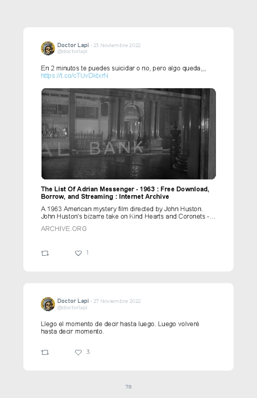 Doctor Lapi made the blook of their their Twitter account ! Support their creativity by buying their blook or create your own now on BlookUp!