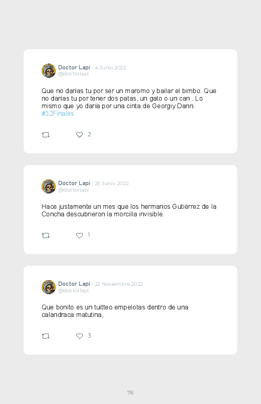 Doctor Lapi made the blook of their their Twitter account ! Support their creativity by buying their blook or create your own now on BlookUp!