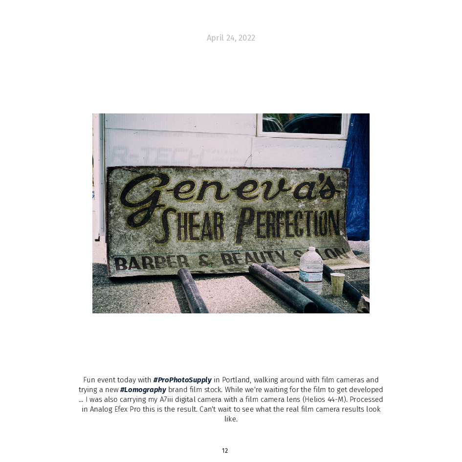 Photos from a year spent (mostly) in Portland, Oregon USA. Yes, it's true, Portland is weird. And OK, so am I. But I am clever, insightful, handsome, and of course, modest, and I am not solely defined by my weirdness. I am a technophile and these images were captured with an assortment of imaging devices ranging from full-frame digital cameras, to film cameras with vintage glass, to cell phones, and even to infrared-modified cameras. Love the one you're with. So sorry, purists, but very few of them are What The Camera Saw. Digital means freedom to fiddle with the bits. Some of these photos are straight out of the camera. Most have been fiddled with until what I see on the monitor matches what I see in my mind's eye. And so it goes.