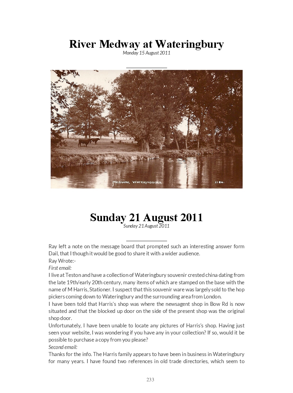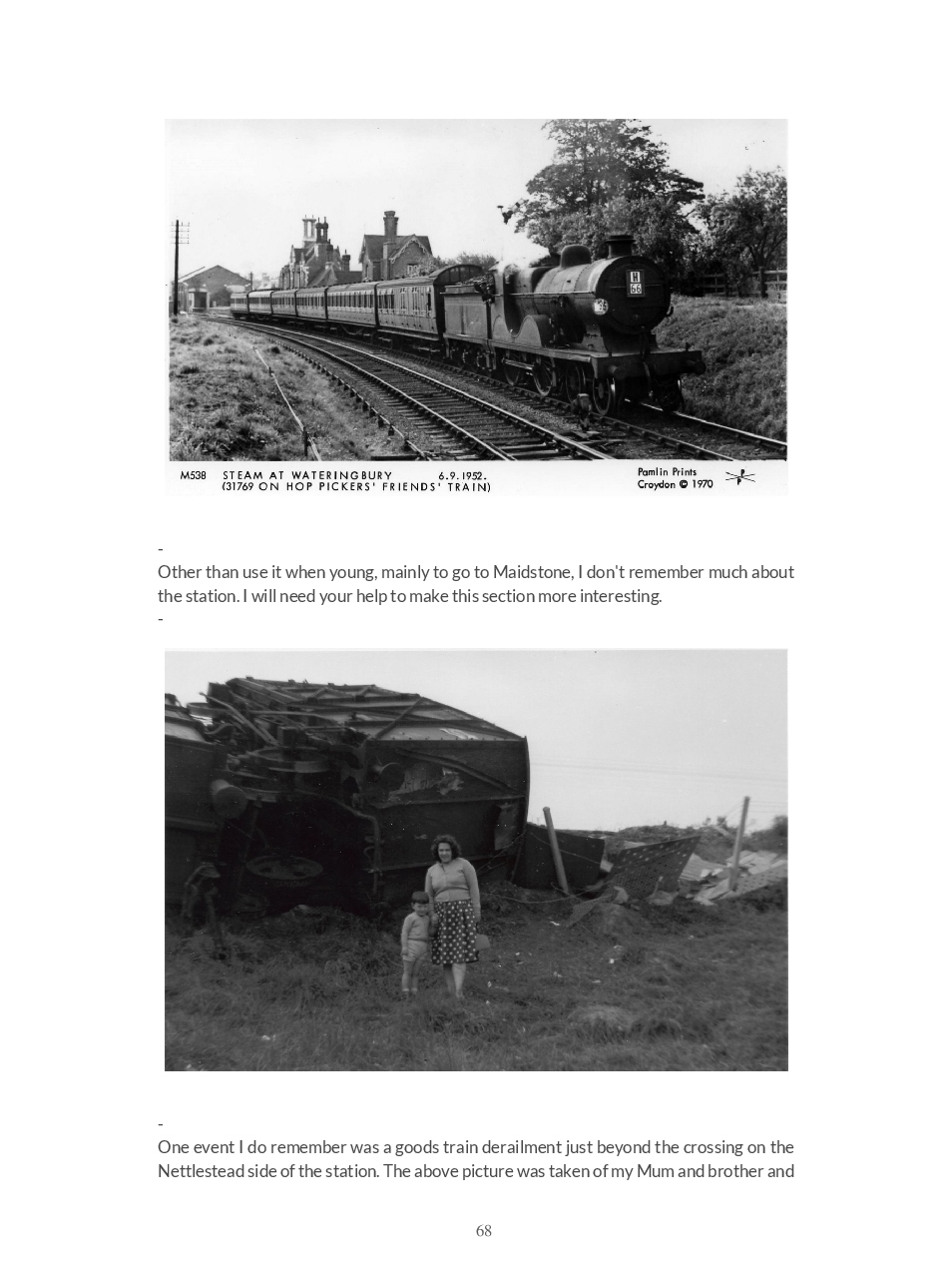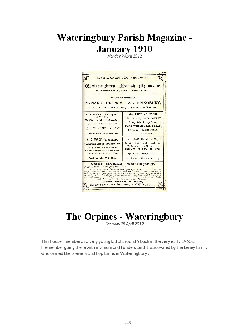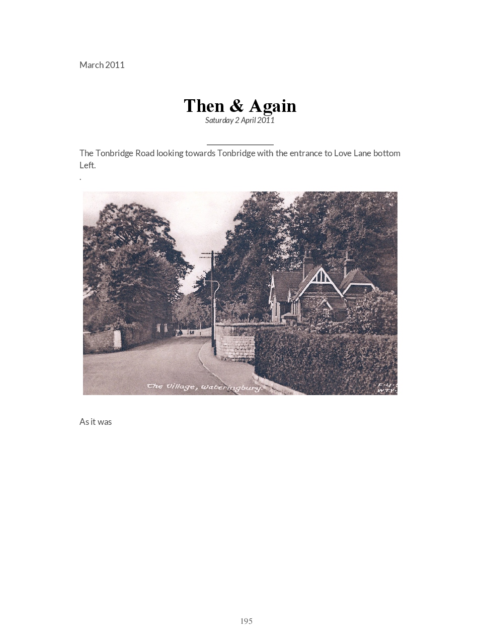 This is a direct download of the Blogspot ‘Wateringbury Remembered’ a website where we share memories and photographs of the village in The Garden of England, Kent UK.