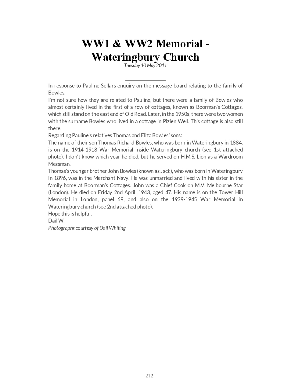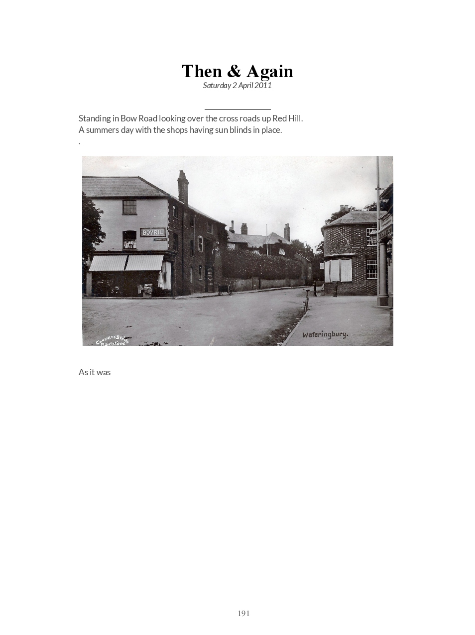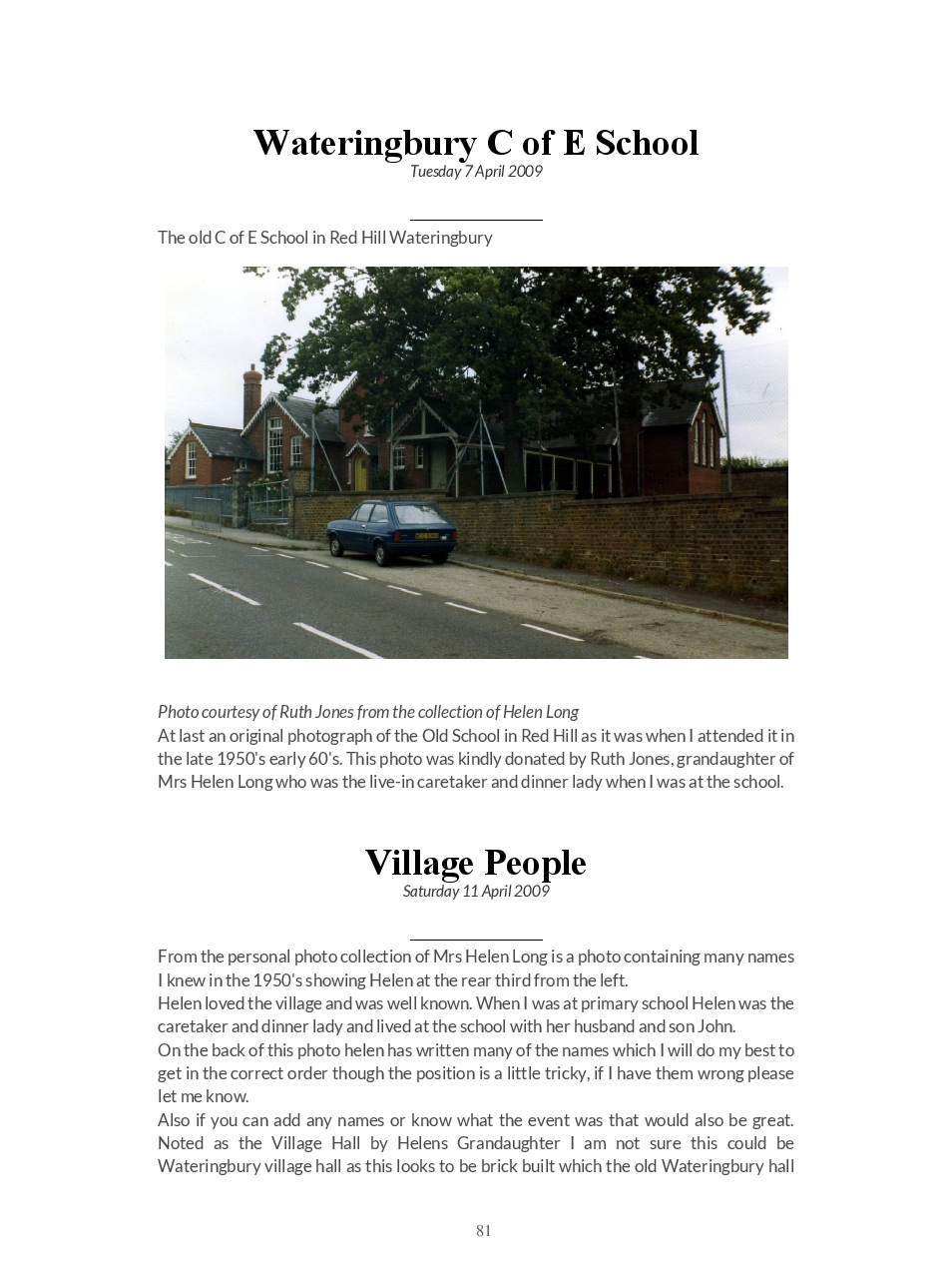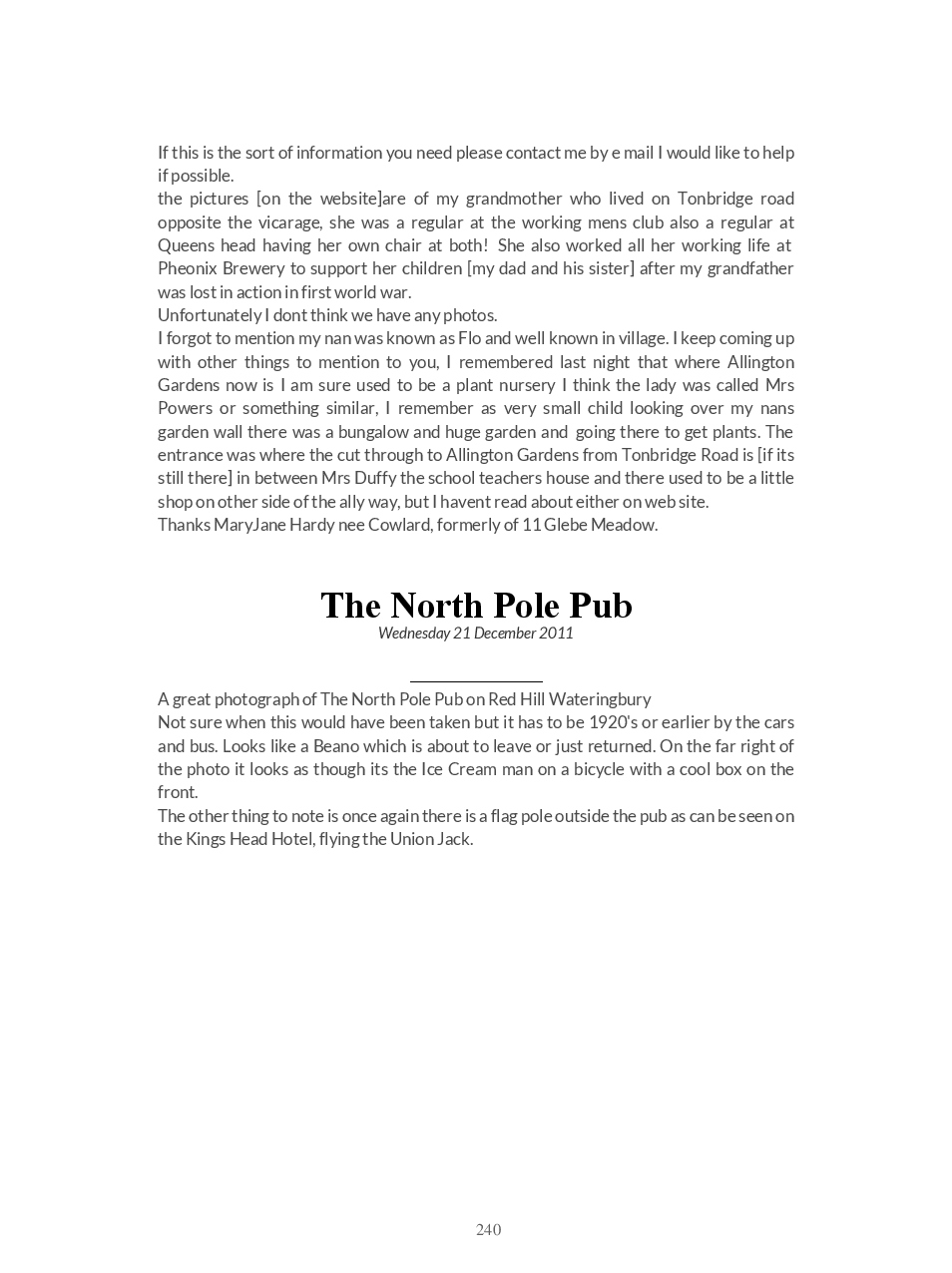 This is a direct download of the Blogspot ‘Wateringbury Remembered’ a website where we share memories and photographs of the village in The Garden of England, Kent UK.