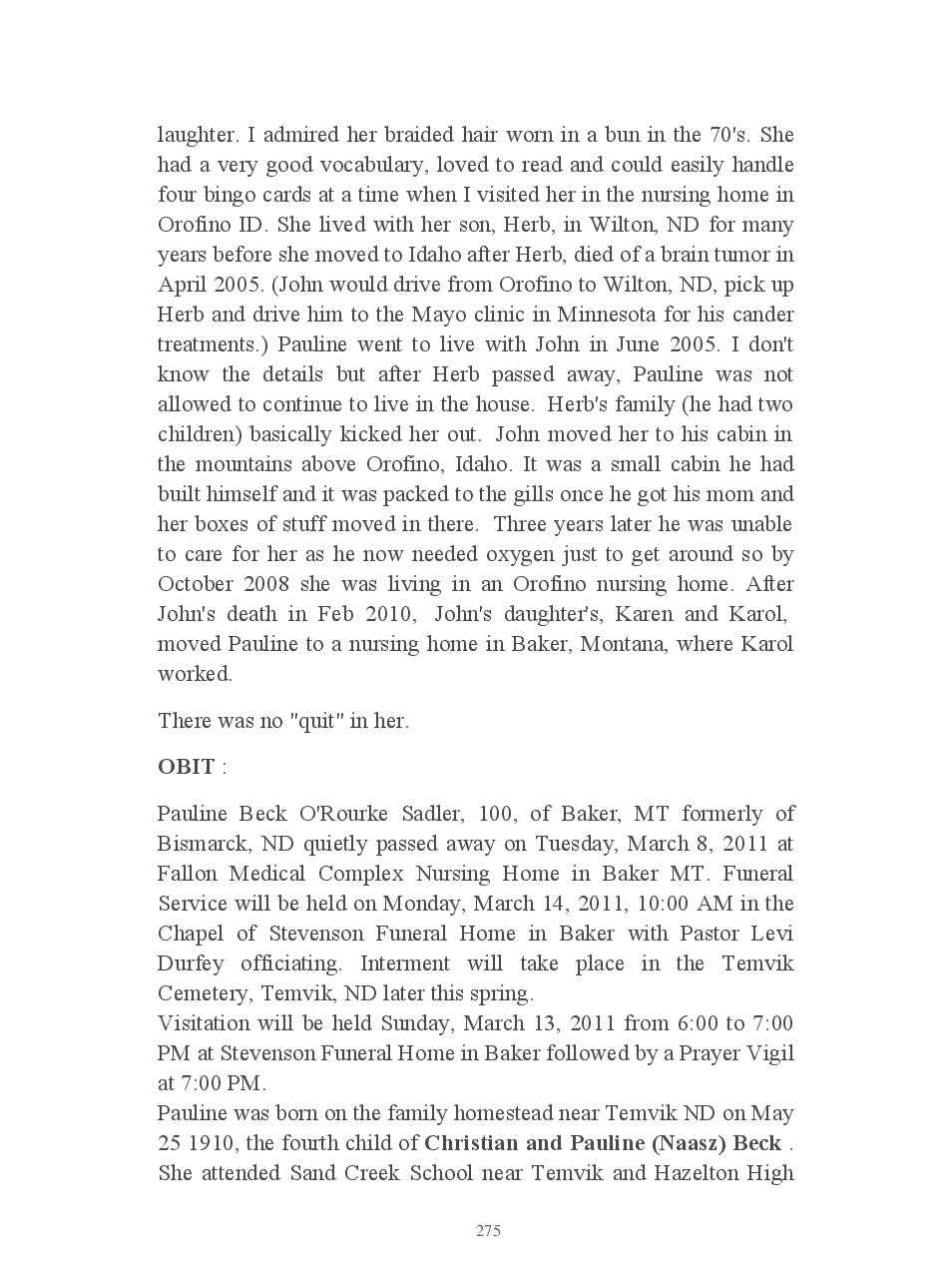 Beck - Family History