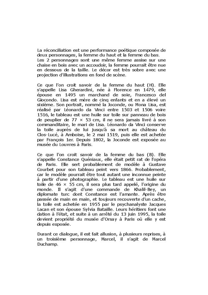 La réconciliation est un dialogue entre 2 personnages : La femme du haut et la femme du bas.
