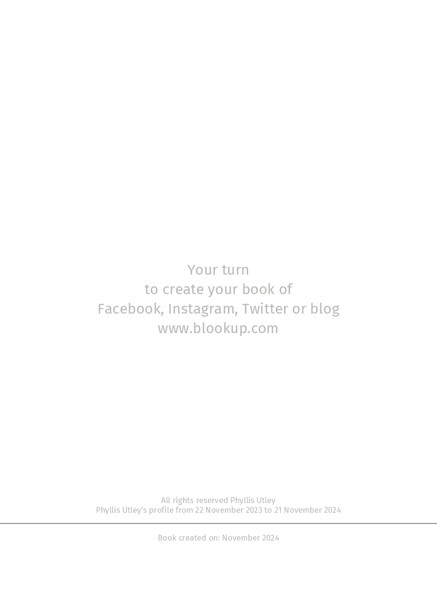 Phyllis Utley made the blook of their their facebook account ! Support their creativity by buying their blook or create your own now on BlookUp!