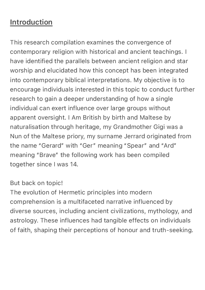 This Book is an exploration into what the knights learnt to cause theirs downfall from pope clementII order to disband and execute the knights, an exploration into the origins of the Occult from Hermeticism, Greek & EgyptologyMythology and ancient Sumerian beliefs and its correspondence to astrology into modern biblical teachings