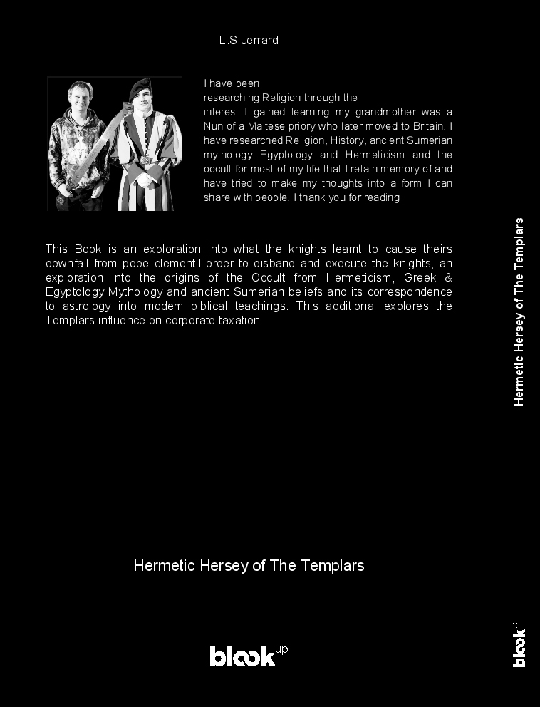 This Book is an exploration into what the knights leamt to cause theirs downfall from pope clementil order to disband and execute the knights, an exploration into the origins of the Occult from Hermeticism, Greek & Egyptology Mythology and ancient Sumerian beliefs and its correspondence to astrology into modem biblical teachings. This additional explores the Templars influence on corporate taxation