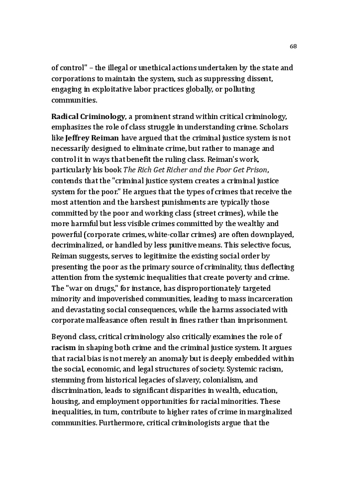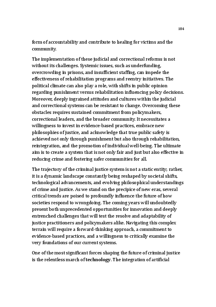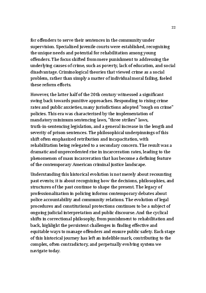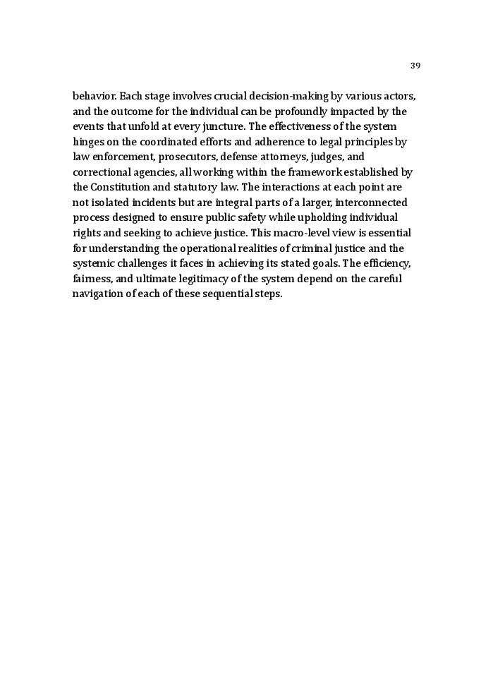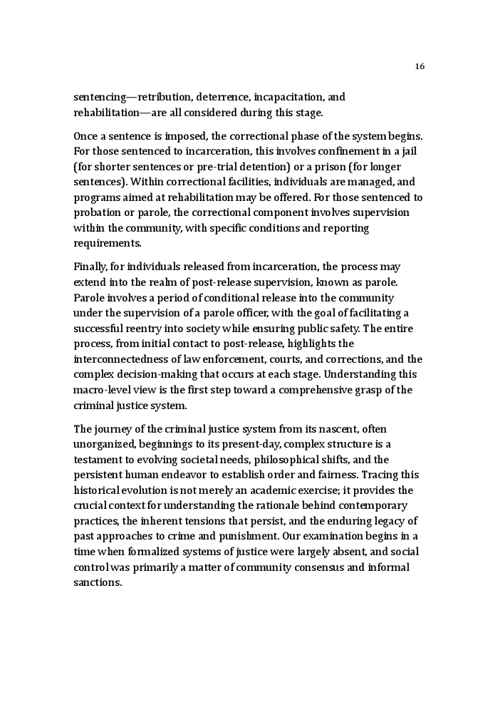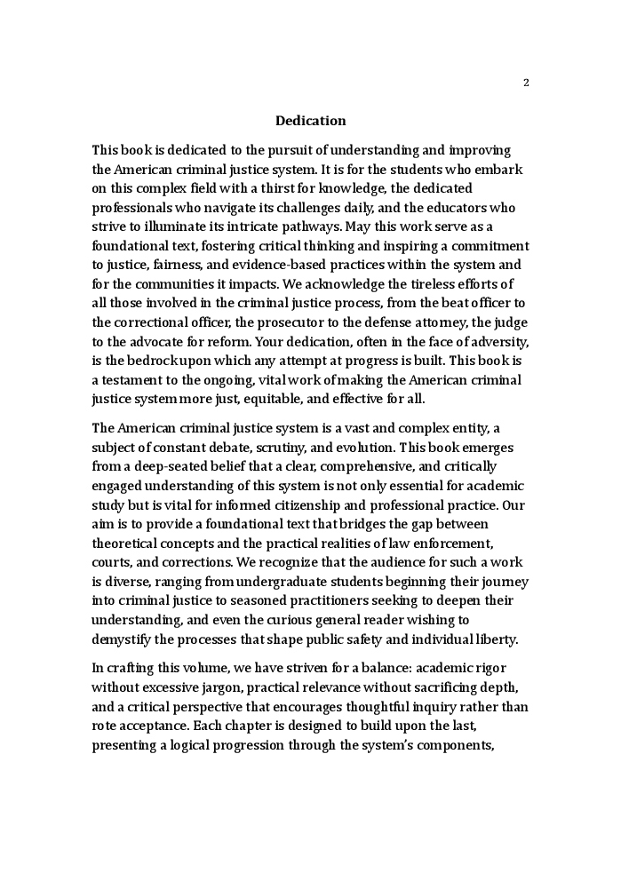 This book serves as an introduction to the field of criminal justice, aimed at anyone interested in understanding the complex systems of law enforcement, the judiciary, and corrections. The book provides a foundational understanding of the criminal justice process, the theoretical frameworks that guide it, and the practical implications of criminal justice policies.
