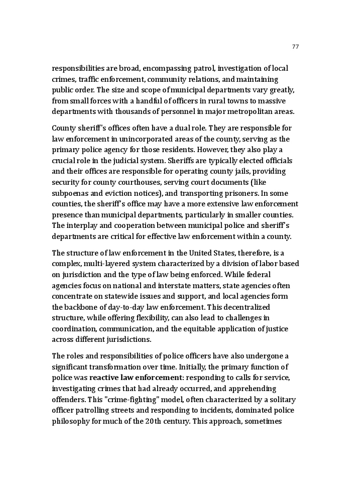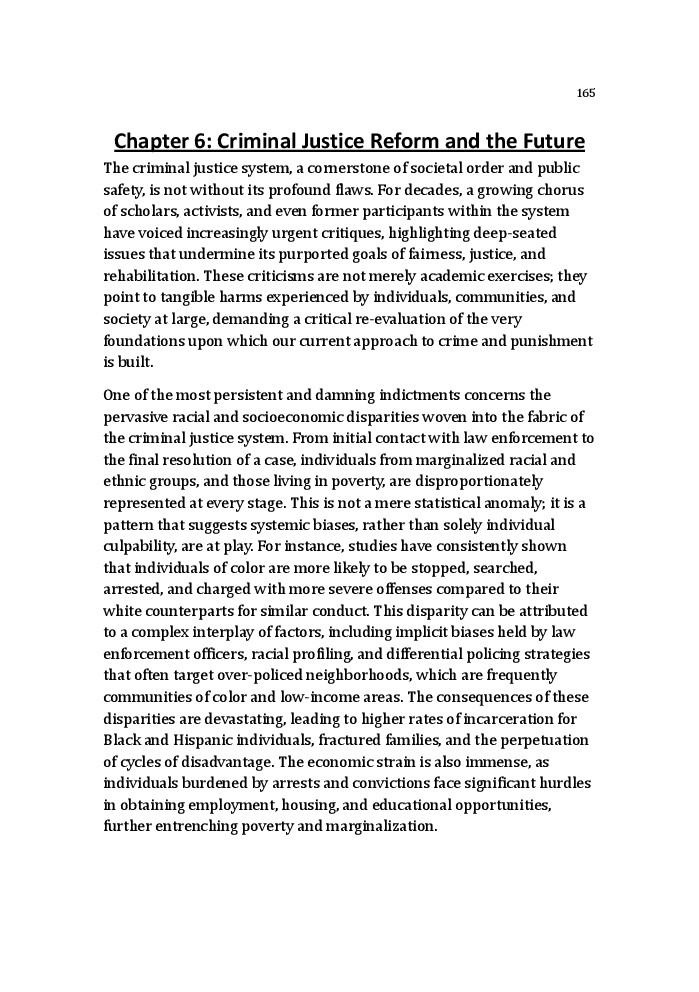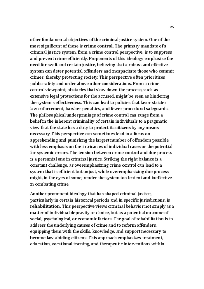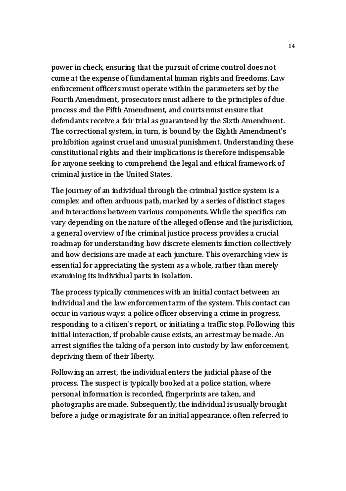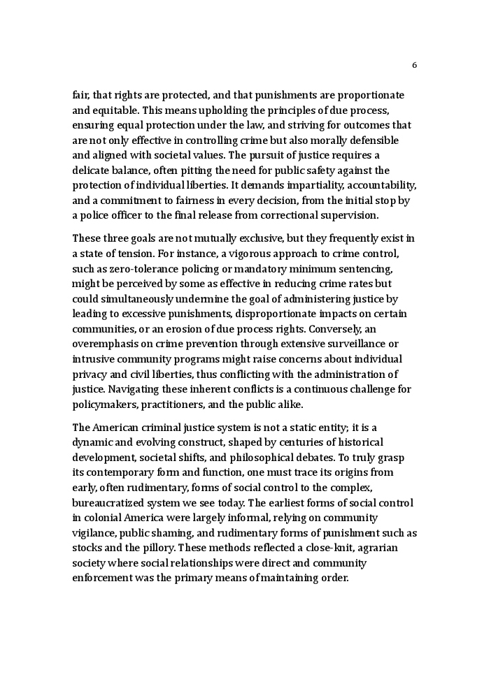 This book serves as an introduction to the field of criminal justice, aimed at anyone interested in understanding the complex systems of law enforcement, the judiciary, and corrections. The book provides a foundational understanding of the criminal justice process, the theoretical frameworks that guide it, and the practical implications of criminal justice policies.
