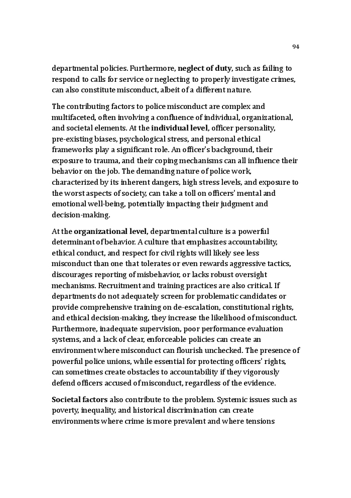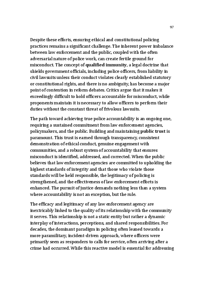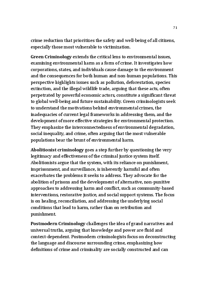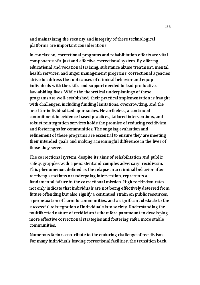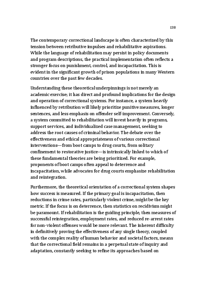 This book serves as an introduction to the field of criminal justice, aimed at anyone interested in understanding the complex systems of law enforcement, the judiciary, and corrections. The book provides a foundational understanding of the criminal justice process, the theoretical frameworks that guide it, and the practical implications of criminal justice policies.