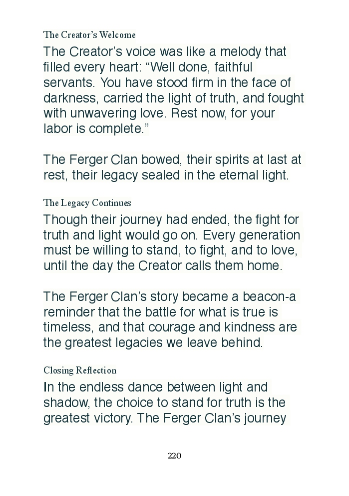 The Ferger Clan—warriors of faith, forged in fire—rise to face a world unraveling. From ancient