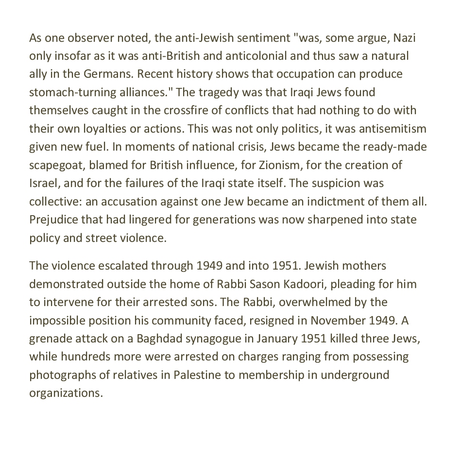 For more than 2,600 years, Iraqi Jews built a thriving world in Iraq—one that collapsed within a single generation. This story tells this sweeping history through the life of Anwar Khadouri Chitayat, a gifted boy from 1930s Baghdad. As Iraq grew increasingly hostile toward its Jewish citizens, Anwar’s academic brilliance opened an escape route to America, even as his family faced imprisonment, perilous border crossings, and the exodus that emptied Iraq of nearly all its Jews. Anwar’s story is a testament to resilience, reinvention, and the enduring ties of family, illuminating both a vanished civilization and the building new worlds from the fragments of the old.