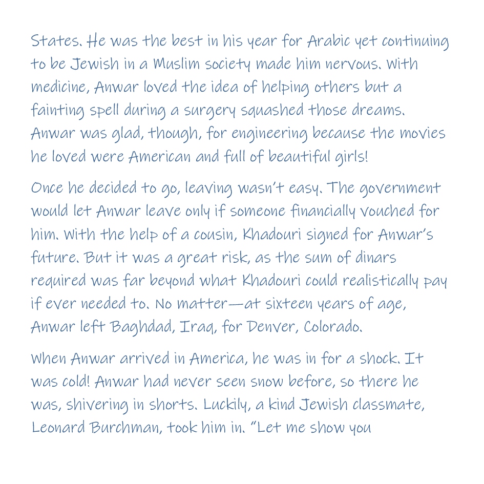 Anwar’s Joyful Perseverance tells the inspiring true story of a brave Jewish boy from 1930s Baghdad who dreamed of building a world of his own. From splashing in the Tigris River and studying hard in a tiny home, to traveling across the ocean and becoming an inventor whose ideas reached the stars, Anwar’s journey shows how courage, curiosity, and kindness can carry us through even the biggest challenges. Filled with adventure, family love, and the magic of dreaming big, this story invites young readers to believe in their own brilliance—no matter where they begin.