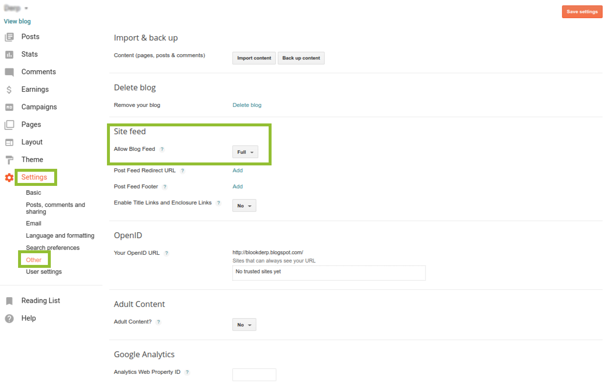 | BLOGGER | Blogger belongs to Google: Our website will automatically connect you to Blogger with the Gmail account to which you are currenty connected to and may not find an associated blog. Please make sure you linked your Blogger account to your Gmail e-mail address! Make sure that your Blogger blog's feed is activated by going to your Blogger administration panel, in "settings", "other", "allow blog feed" and choose "full" as an option. Save the changes and you will be able to create your blook!