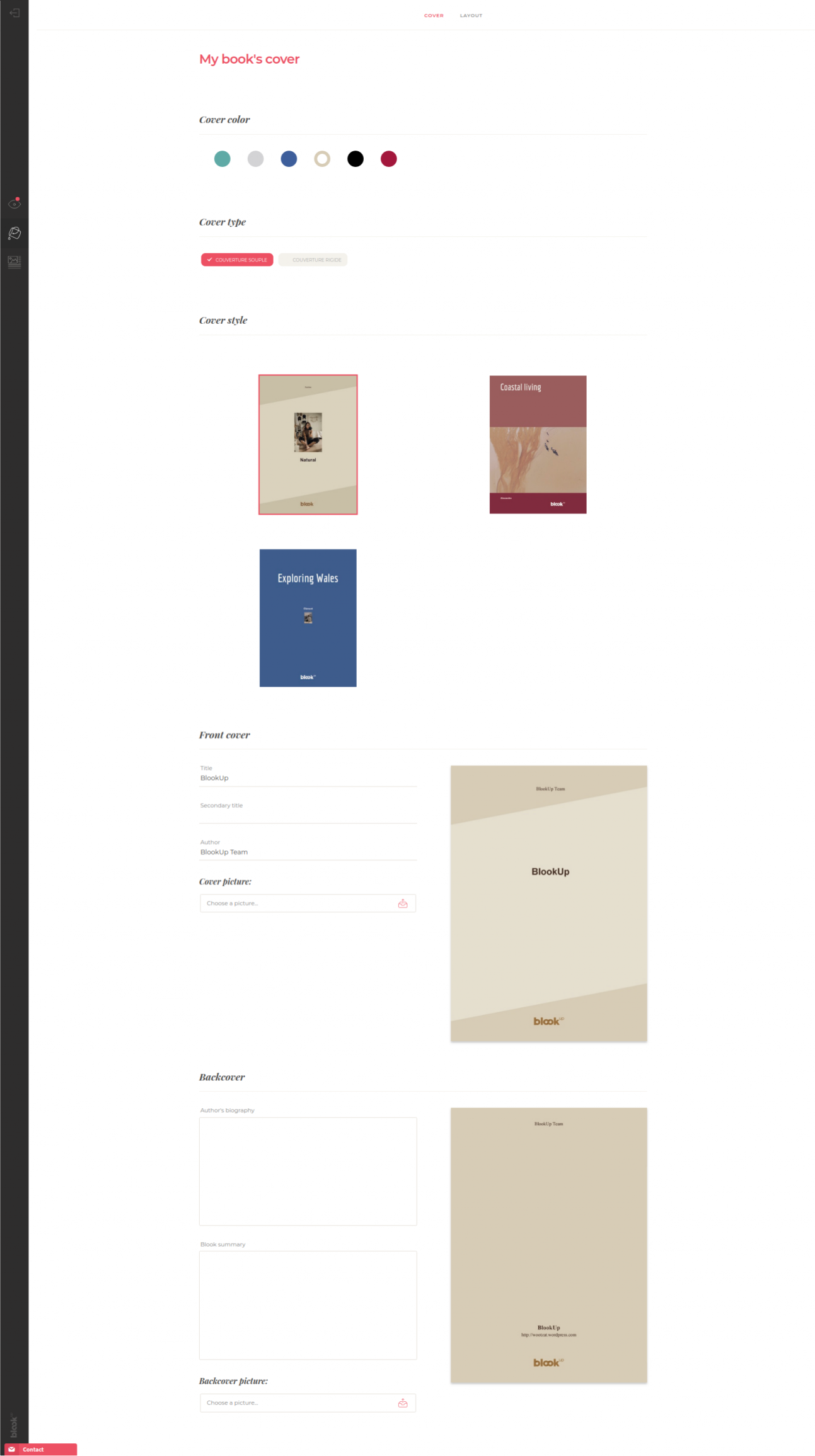 BlookUp gives you an automated layouting tool that will take care of your social network or blog's content. Depending on the blook you chose, you will be able to freely select the content you want to see in your book and/or customize the covers.