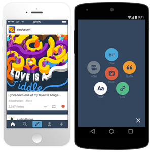 Il est très facile de publier sur Tumblr toutes sortes de contenu. En effet, pour cela, la plateforme permet de choisir entre différents formats de billets selon leur type : texte, photo, citation, liens, discussion, audio et vidéo. La mise en page est alors optimisée pour que chaque type de contenu.