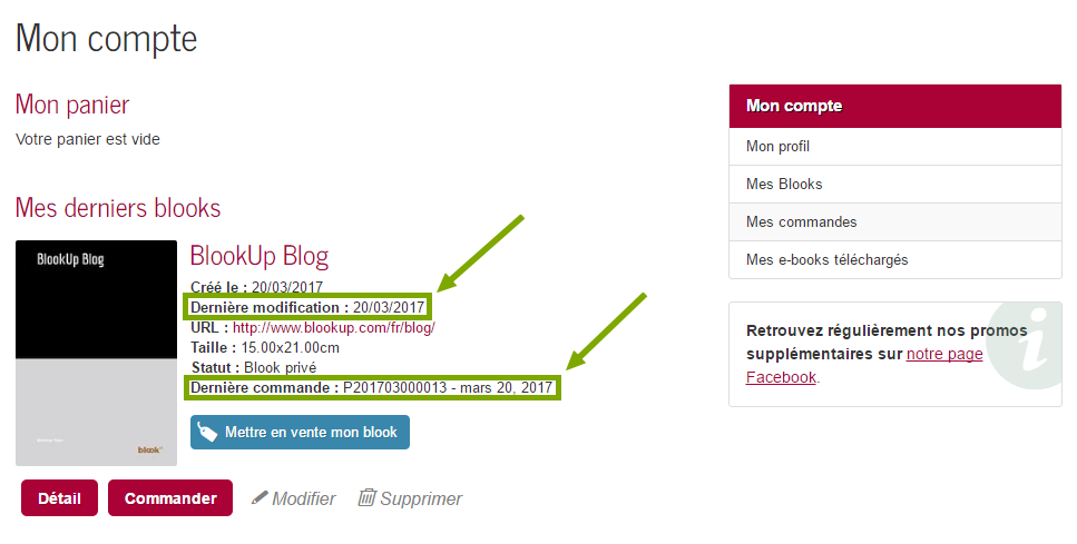 Nous continuerons à envoyer un mail automatique 7 jours avant la suppression des blooks, afin de vous prévenir du temps restant imparti et de vous demander de modifier votre livre si vous souhaitez le conserver 3 mois de plus !