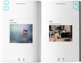 Les blooks de notre collection “Top 100” restituent vos 100 publications les plus populaires par ordre décroissant, à partir de Facebook, Instagram ou Twitter.